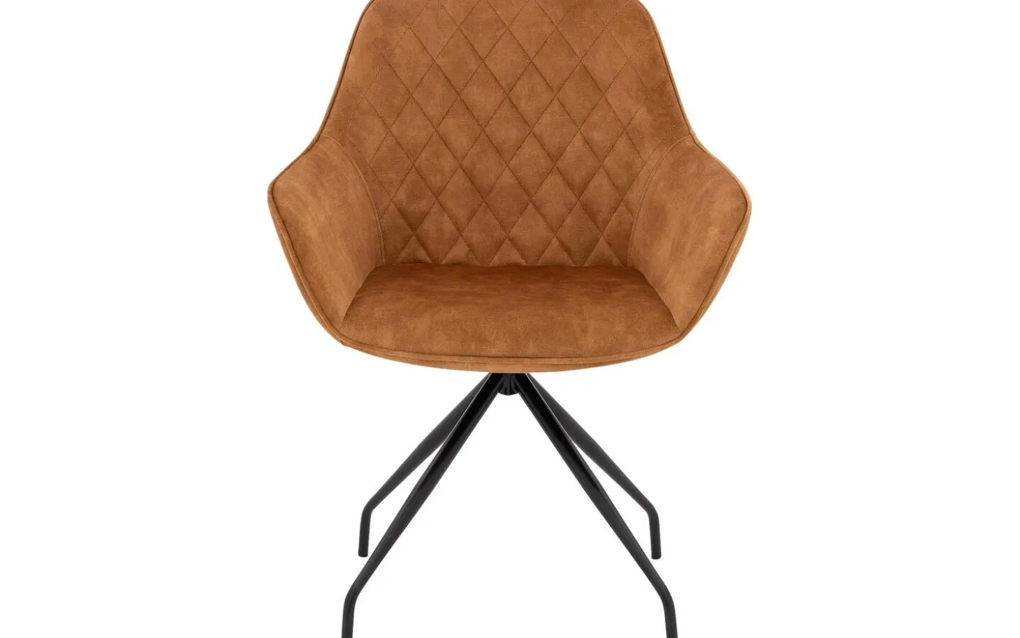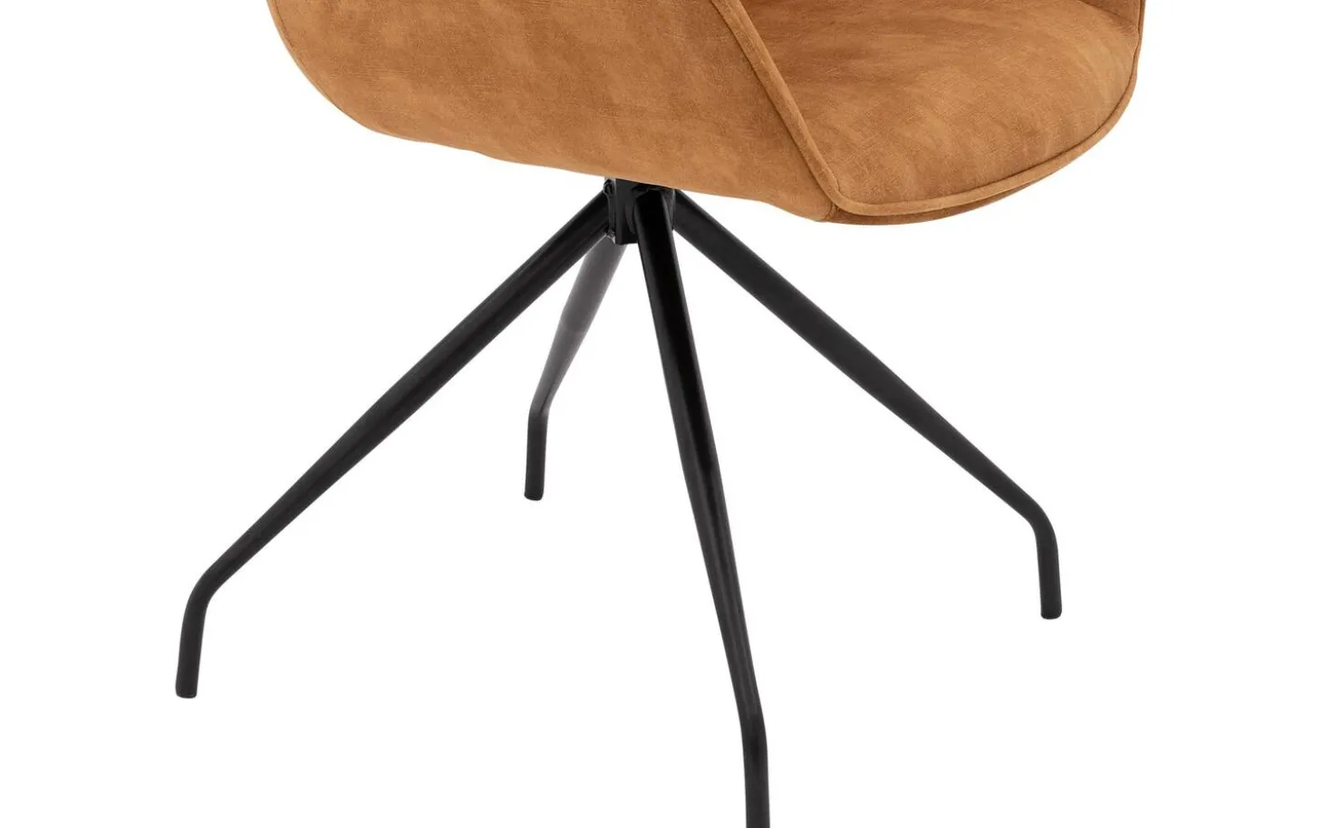 Die feste Polsterung sorgt für einen klaren, modernen Look, der Ihrem Interieur eine zeitgemäße Ausstrahlung verleiht. Die Kombination der warmen Farbe mit dem schwarzen Gestell macht diesen Stuhl zu einem echten Blickfang an Ihrem Esstisch.