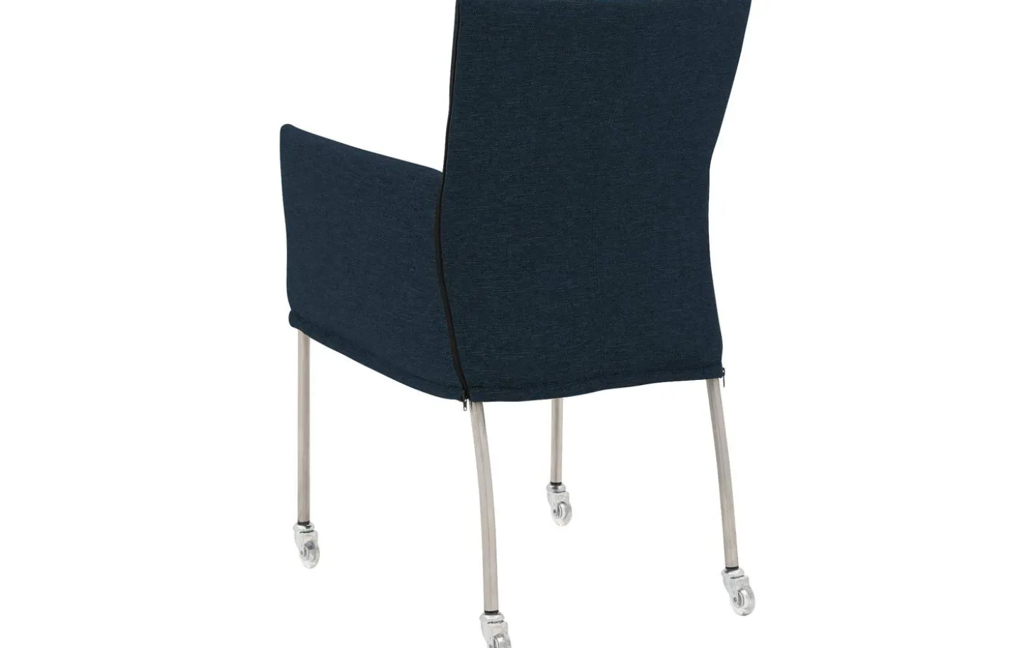 Mit seinen klaren Linien und dem fein gewebten ‚Broadway, marine‘ Stoff hat der Esszimmerstuhl Funk eine zeitlose Ausstrahlung. Dieser blaue Stuhl ist für jahrelange Nutzungsfreude konzipiert, mit einem Stoff, der intensivem täglichen Gebrauch standhält. Das gebürstete Edelstahlgestell bietet eine solide und stilvolle Basis, komplett mit praktischen Rollen.