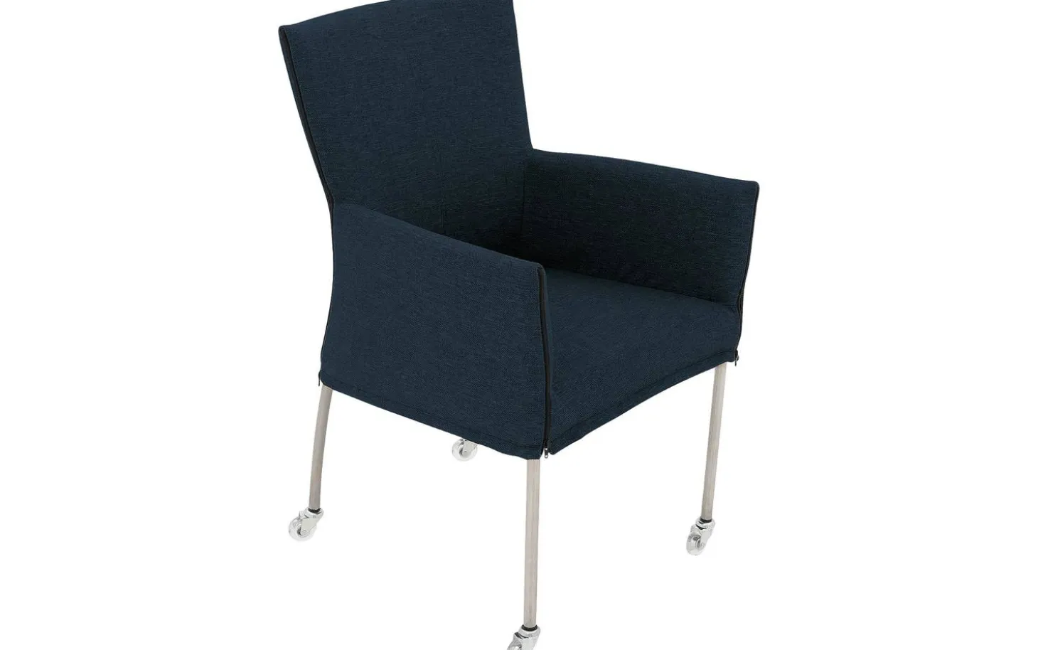 Sehen Sie sich den Esszimmerstuhl Funk an! Dieser blaue Esszimmerstuhl mit Armlehne kombiniert modernes Design mit praktischem Komfort. Der fein gewebte Stoff in einem schönen Marineblau sorgt für eine stilvolle Ausstrahlung, während die handwerkliche Polsterung ein luxuriöses Gefühl vermittelt. Dank der praktischen Rollen können Sie mühelos an den Esstisch heranrücken und wieder wegfahren – ideal für lange und gemütliche Essen mit Freunden und Familie.