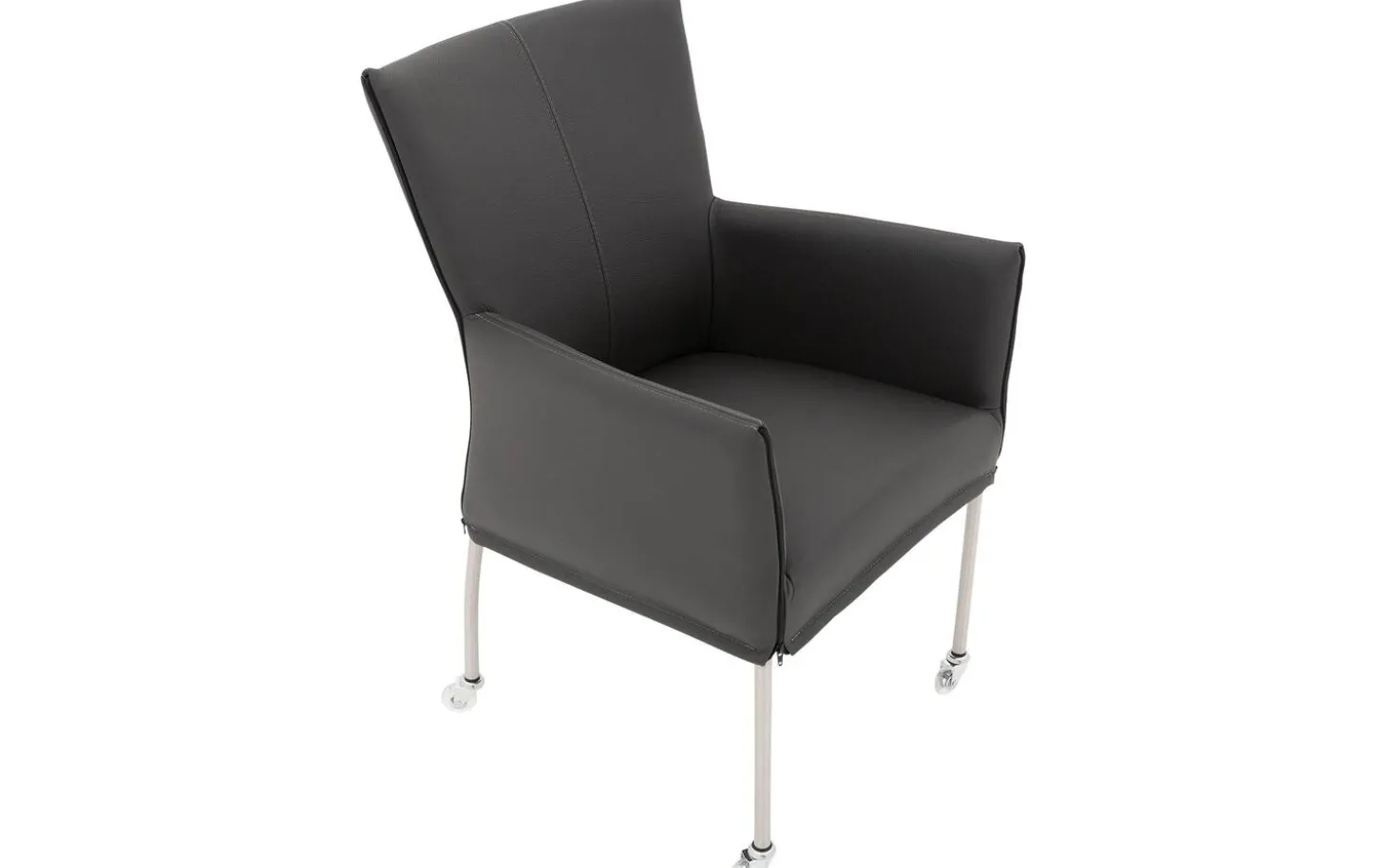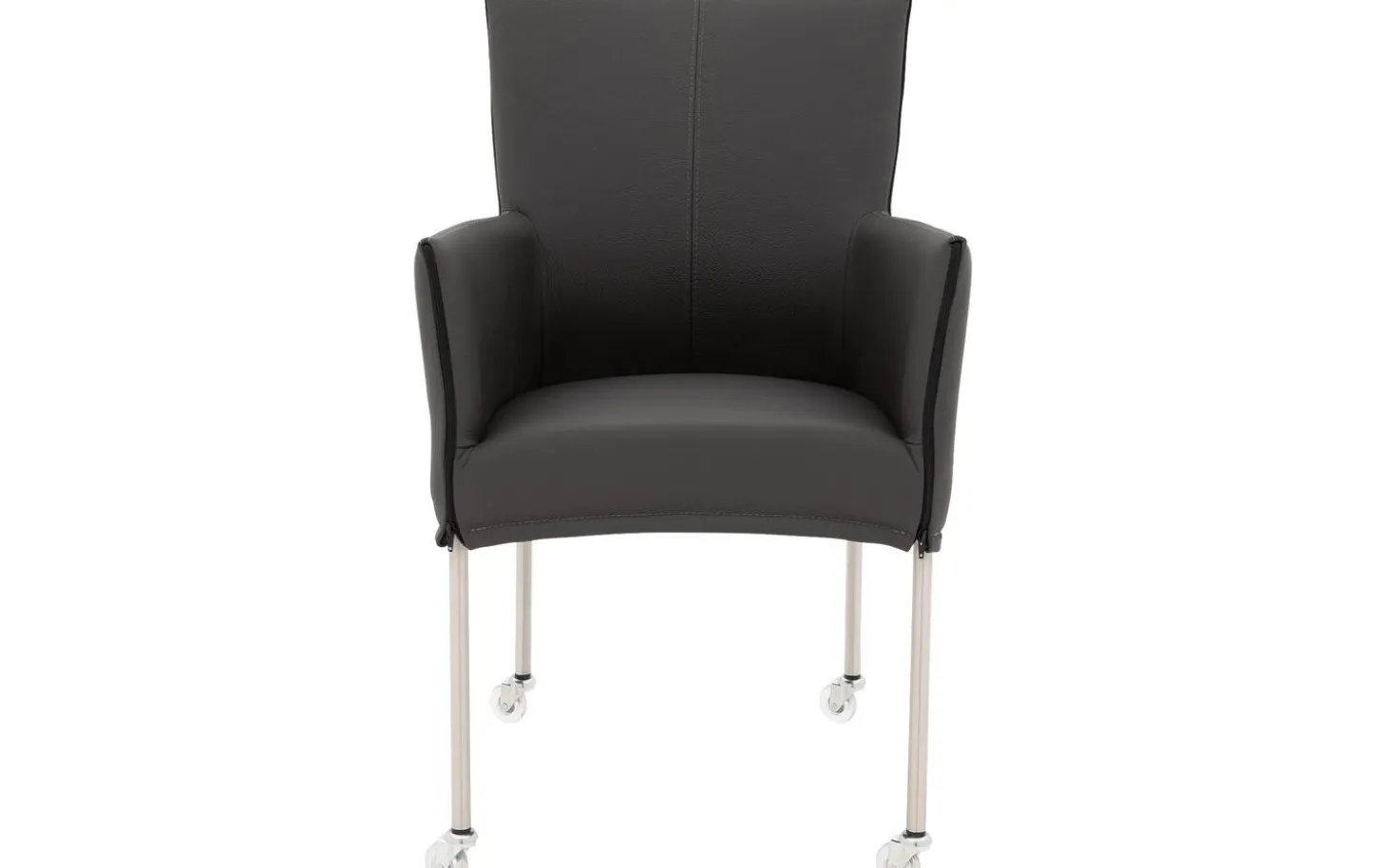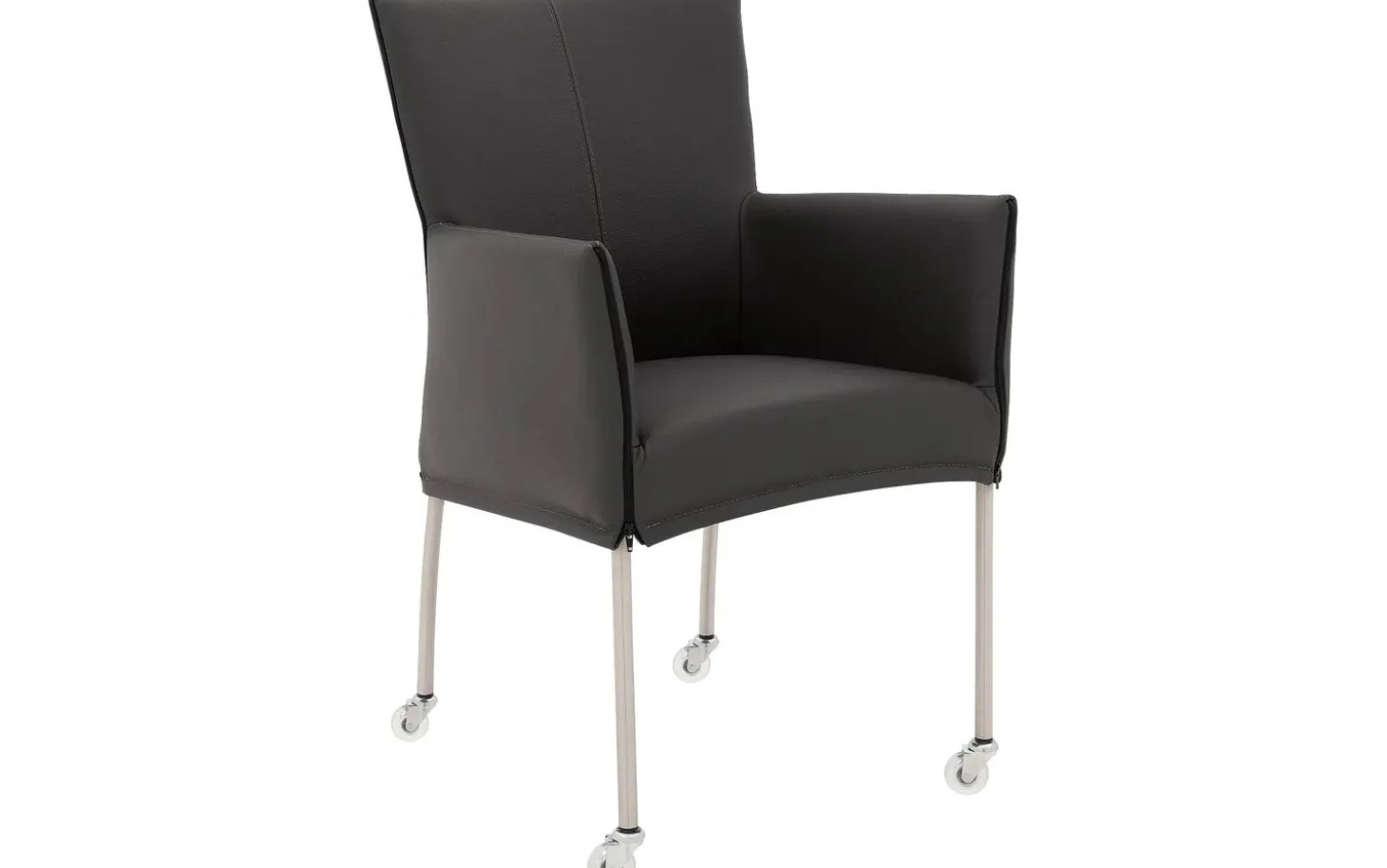 Der Esszimmerstuhl Funk ist ein luxuriöser Designstuhl mit zeitloser Optik. Funk ist mit einem geschmeidigen und langlebigen Masterleder handwerklich bezogen. Der Edelstahlrahmen in Kombination mit der hochwertigen Luxafoam-Polsterung garantieren jahrelanges stilvolles und bequemes Beisammensitzen bei Tisch. Der Esszimmerstuhl Funk ist mit praktischen Skater-Rollen ausgestattet, wodurch sich der Stuhl leicht verschieben lässt. Auch das Aufstehen wird dadurch erleichtert.