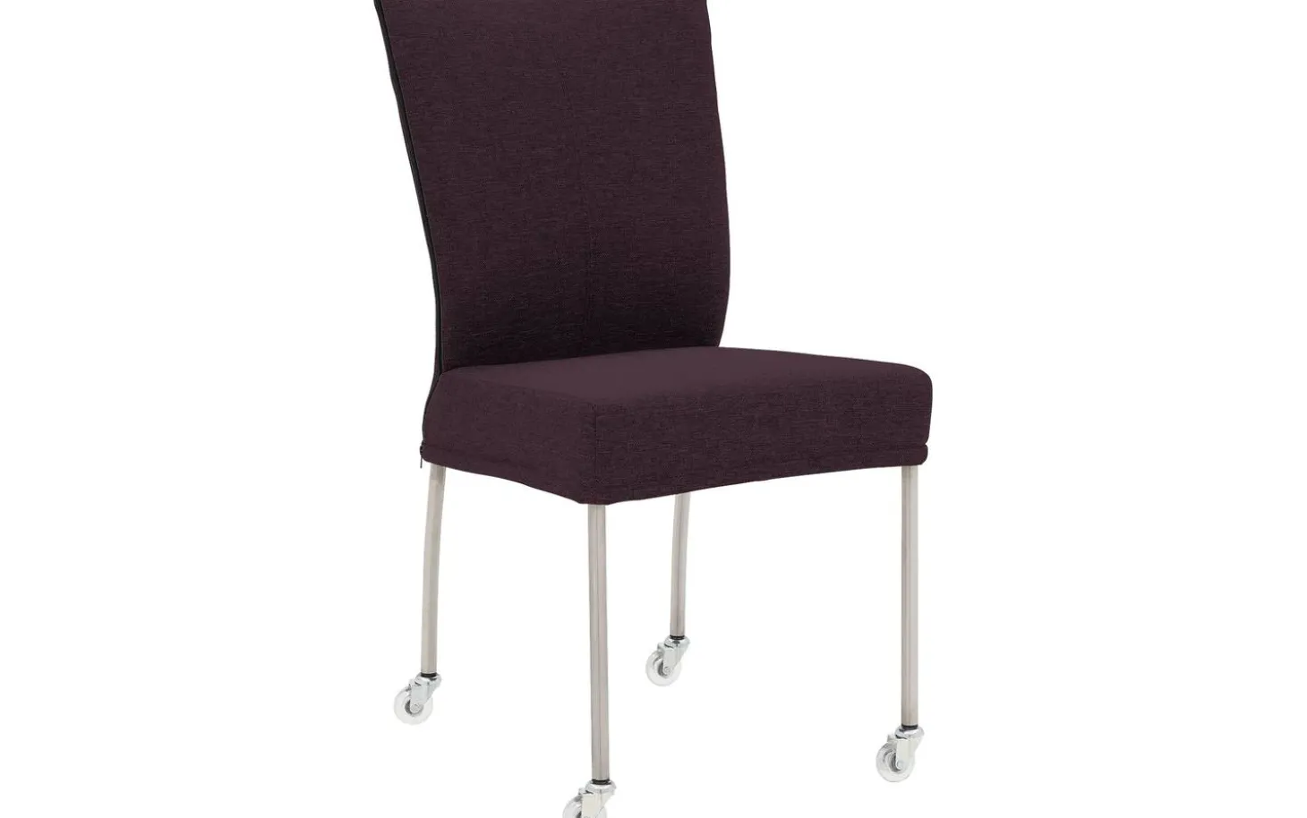 Das gebürstete Edelstahlgestell bildet einen stilvollen Kontrast zur warmen Stoffbespannung. Diese Kombination macht den Esszimmerstuhl Funk vielseitig einsetzbar in verschiedenen Einrichtungsstilen, von modern bis skandinavisch. Die Rollen sind nicht nur praktisch, sondern verleihen dem Stuhl auch einen verspielten Charakter.