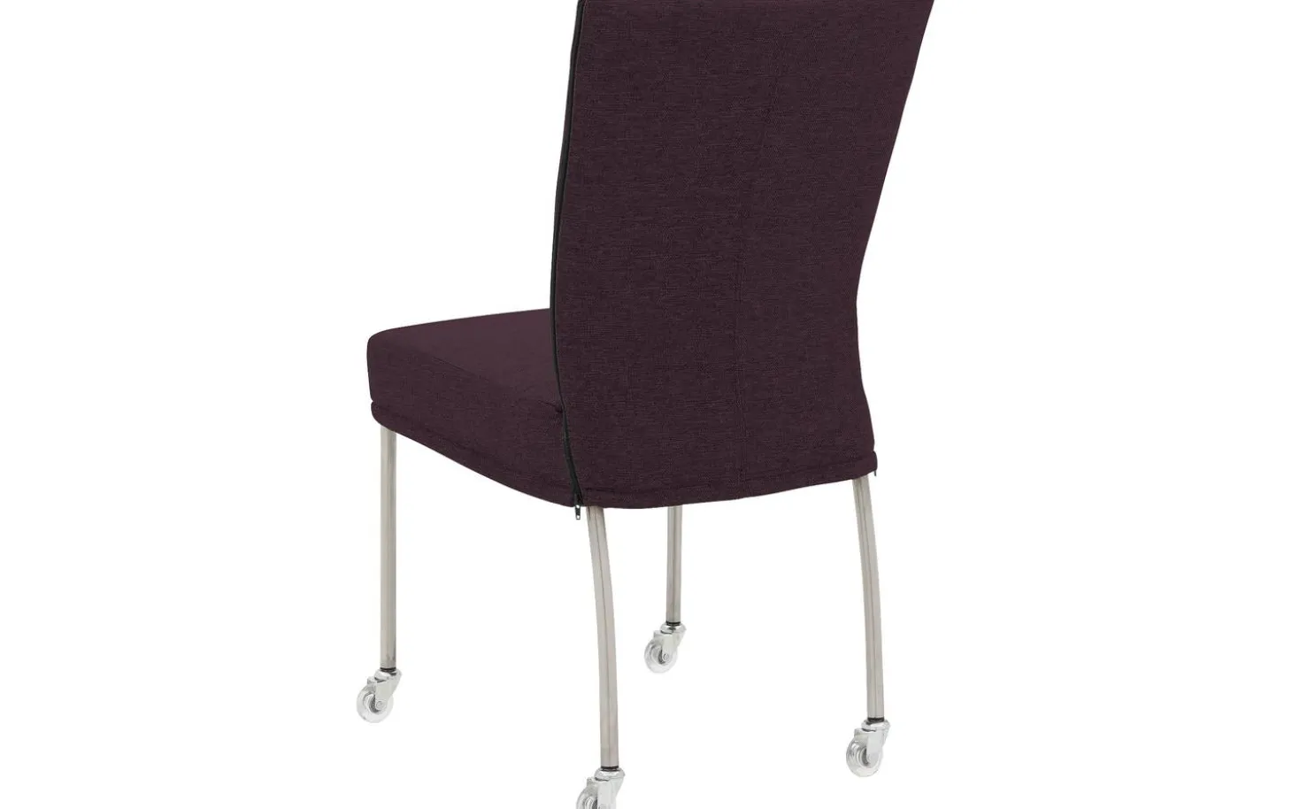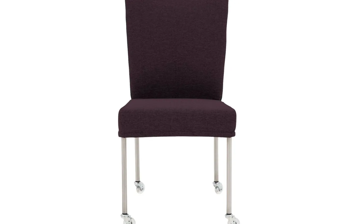 Entdecken Sie den Esszimmerstuhl Funk! Dieser rosafarbene Stuhl aus Stoff ohne Armlehne verbindet stilvolles Design mit praktischem Komfort. Der fein gewebte Aubergine-Stoff verleiht diesem Esszimmerstuhl eine moderne und zeitlose Ausstrahlung. Dank der praktischen Skate-Rollen setzen Sie sich mühelos an den Tisch und stehen nach dem Essen leicht wieder auf. Perfekt für lange, gesellige Essen mit Familie und Freunden.