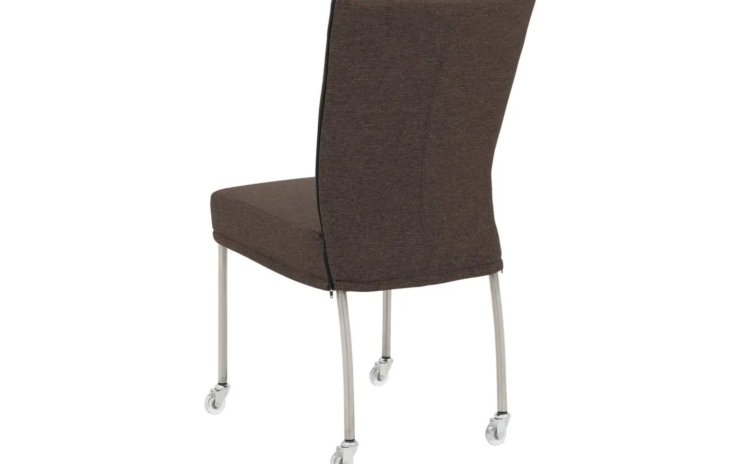 Das gebürstete Edelstahlgestell bietet ein stilvolles und robustes Fundament, komplett mit praktischen Rollen. Die feste Polsterung sorgt für einen klaren und modernen Look, der jahrelang schön bleibt. Durch das Design ohne Armlehne können Sie diesen Stuhl leicht an den Esstisch schieben.