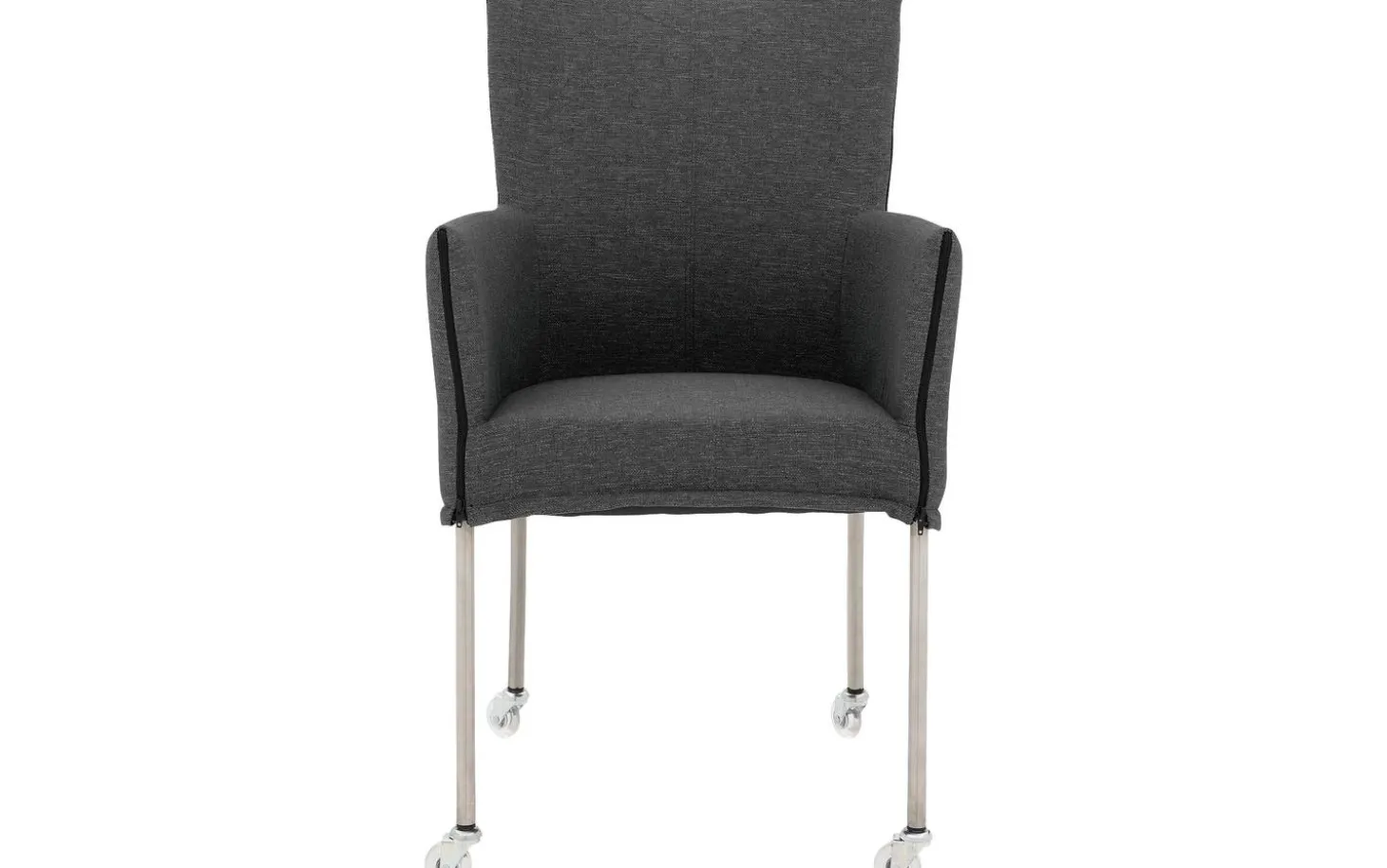 Grauer Esszimmerstuhl Funk mit Armlehne kombiniert modernes Design mit praktischem Komfort. Dieser stilvolle Stuhl ist handwerklich mit einem fein gewebten Broadway-Stoff in Dunkelgrau bezogen. Die praktischen Kufen machen das Heranrücken und Aufstehen vom Tisch mühelos – perfekt für langanhaltende Essen. Mit seiner zeitlosen Ausstrahlung passt Funk in verschiedene Einrichtungsstile, von modern bis klassisch.