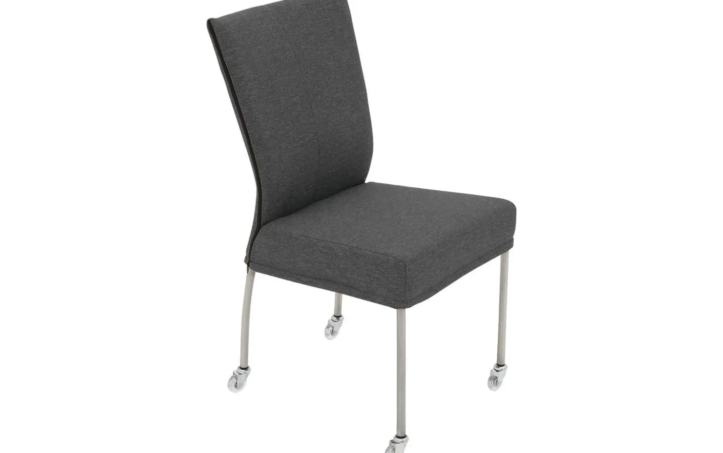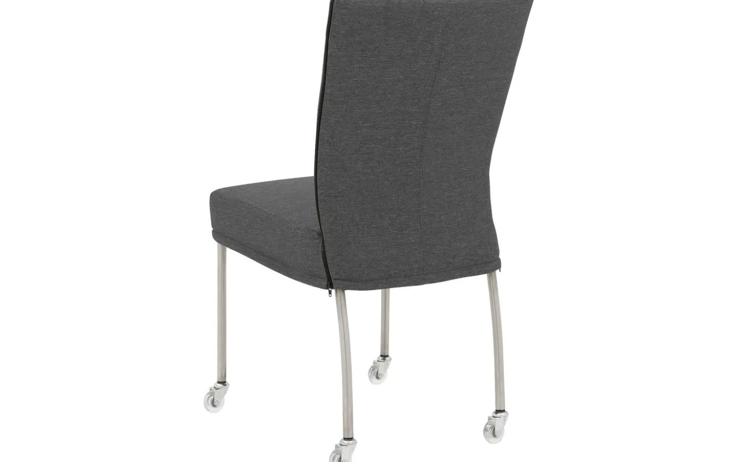 Lernen Sie den grauen Esszimmerstuhl Funk ohne Armlehne kennen. Dieser dunkelgraue Stuhl aus Stoff verbindet modernes Design mit einer zeitlosen Ausstrahlung. Die fein gewebte Broadway-Polsterung verleiht ein luxuriöses Gefühl, während die praktischen Skate-Rollen dafür sorgen, dass Sie leicht an den Tisch heranrücken und wieder aufstehen können. Dank der fachmännischen Polsterung und der robusten Edelstahlkonstruktion werden Sie jahrelang Freude an diesem stilvollen Esszimmerstuhl haben.
