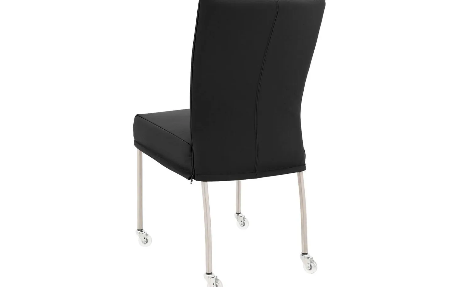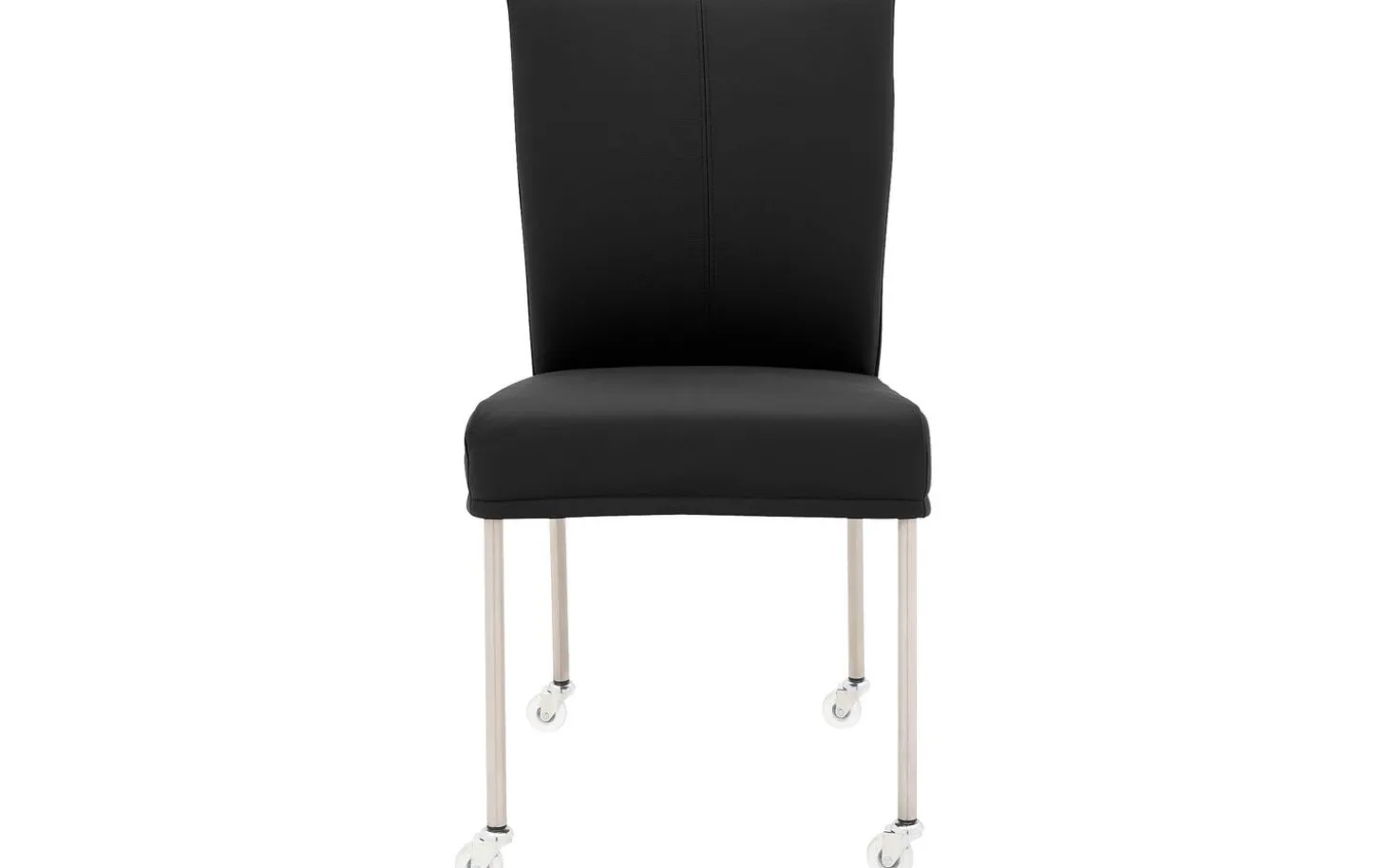 Der schwarze Esszimmerstuhl Funk ohne Armlehne kombiniert modernes Design mit praktischem Komfort. Dieser Stuhl aus Leder ist handwerklich mit geschmeidigem und langlebigem Masterleder bezogen für eine zeitlose Ausstrahlung. Das Edelstahlgestell und die hochwertige Luxafoam-Polsterung gewährleisten jahrelanges stilvolles Dinieren. Mit den praktischen Gleitkufen lässt sich der Stuhl leicht an den Tisch schieben und nach dem Essen einfach aufstehen.