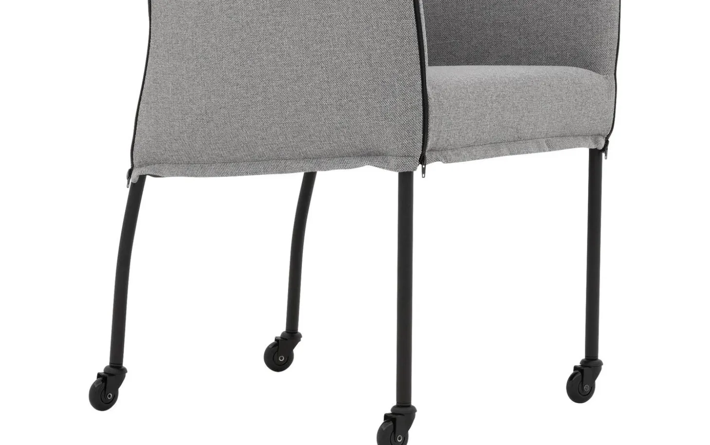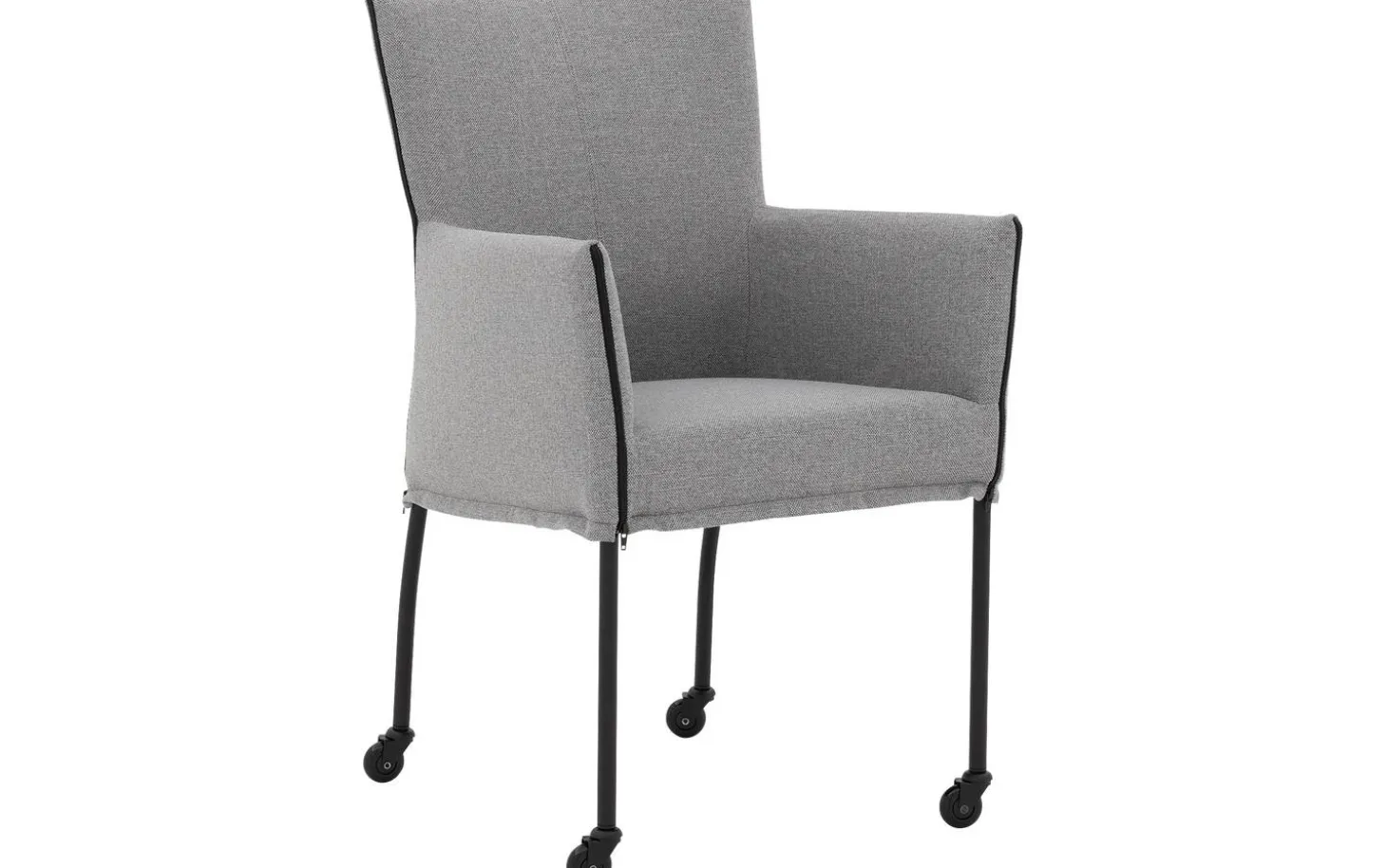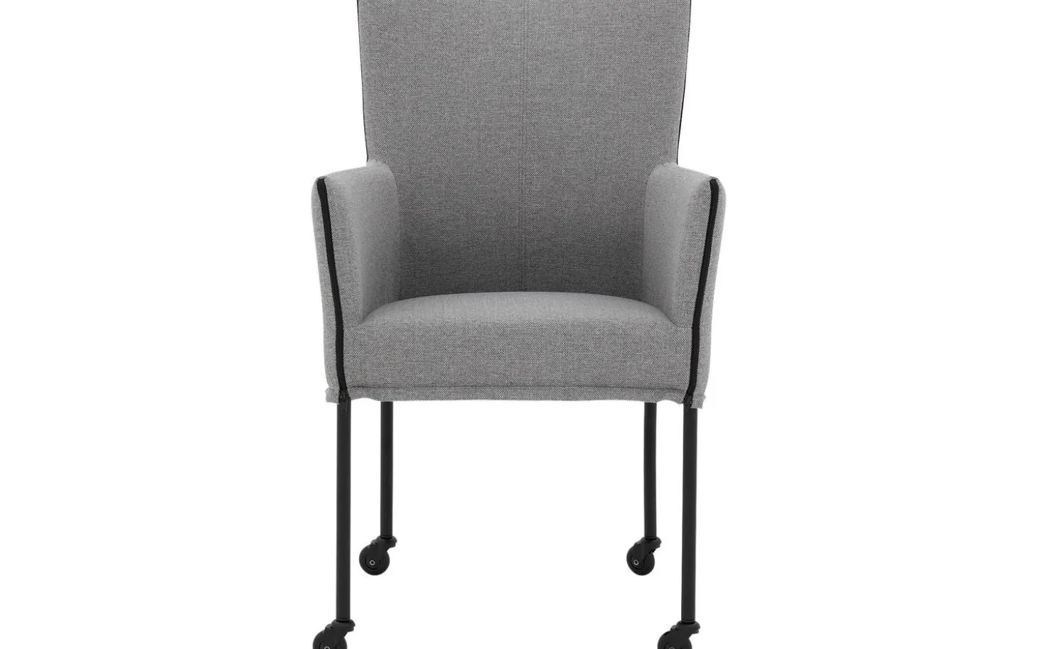 Grauer Esszimmerstuhl Funk mit Armlehne vereint Komfort und Stil an Ihrem Esstisch. Dieser moderne Stuhl ist mit einem fein gewebten grauen Stoff namens Broadway bezogen, der sowohl schön aussieht als auch langlebig ist. Dank der praktischen schwarzen Laufrollen lässt er sich leicht an den Esstisch heranziehen und nach dem Essen wieder bequem aufstehen. Die Kombination aus klarem Design und weicher Polsterung macht diesen Esszimmerstuhl zu einer vielseitigen Bereicherung für jedes Esszimmer.