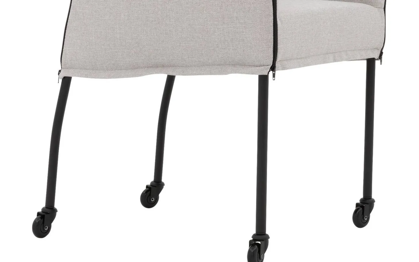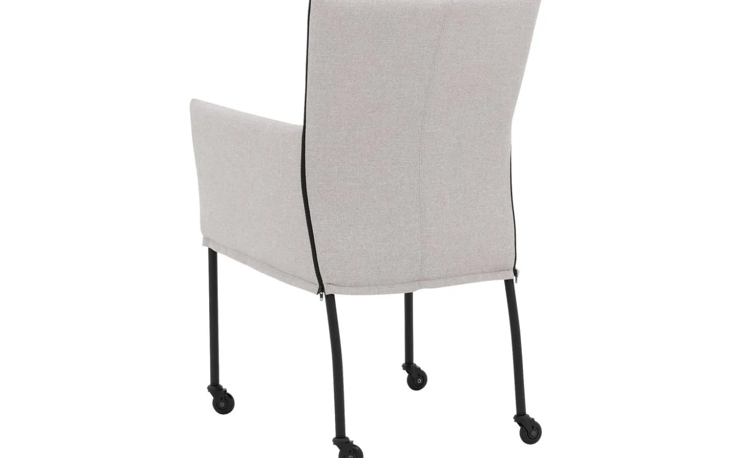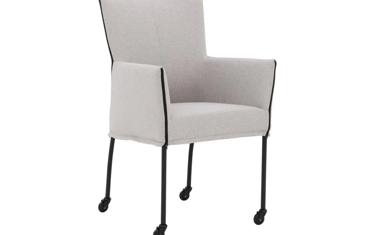 Grauer Esszimmerstuhl Funk mit Armlehne bringt modernes Design in Ihr Esszimmer. Dieser stilvolle Stuhl ist mit fein gewebtem Broadway-Stoff in Hellgrau bezogen, was für eine zeitlose Ausstrahlung sorgt. Dank der praktischen Skate-Rollen schieben Sie sich leicht an den Tisch und stehen nach dem Essen mühelos wieder auf. Die schwarze Pulverbeschichtung des Gestells verleiht diesem Stuhl einen klaren, zeitgemäßen Charakter.