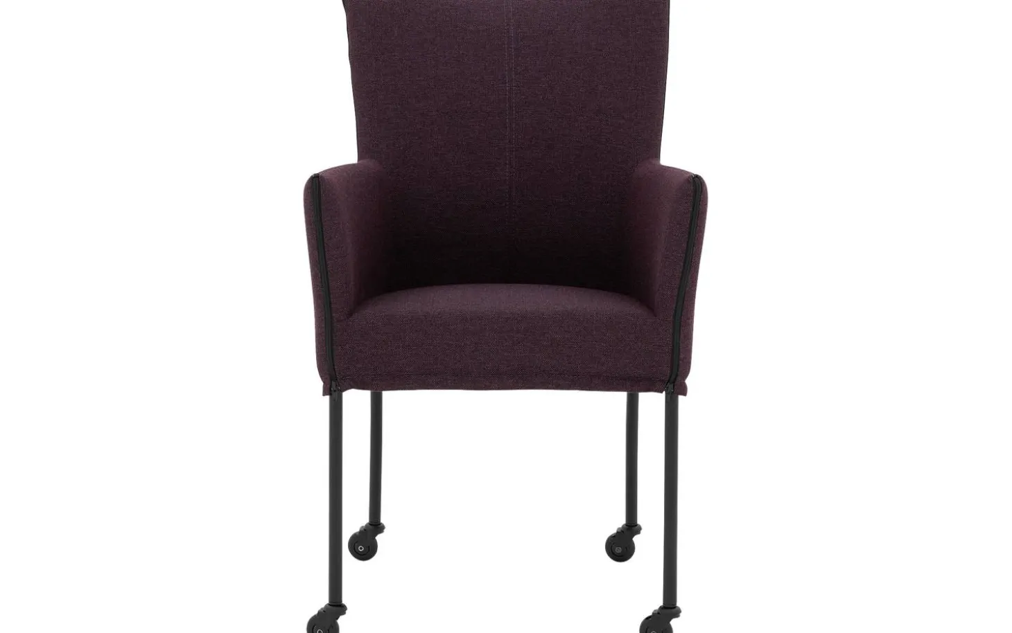 Betrachten Sie den Esszimmerstuhl Funk! Dieser rosafarbene Esszimmerstuhl mit Armlehne verbindet modernes Design mit praktischem Komfort. Der fein gewebte Broadway Aubergine-Bezug verleiht dem Stuhl eine warme Ausstrahlung und passt zu verschiedenen Einrichtungsstilen. Dank der praktischen schwarzen Skateboard-Rollen rücken Sie leicht an den Esstisch und stehen nach einem köstlichen Abendessen ohne Mühe wieder auf.