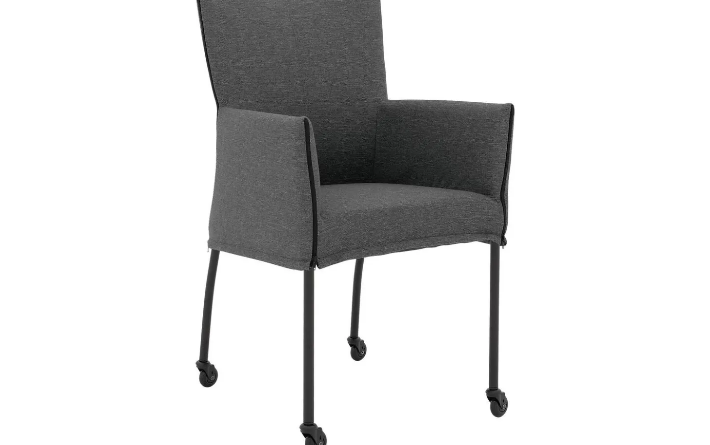 Entdecken Sie den grauen Esszimmerstuhl Funk mit Armlehne. Dieser stilvolle Stuhl kombiniert modernes Design mit praktischem Komfort. Der fein gewebte Broadway-Stoff in Dunkelgrau verleiht dem Stuhl eine zeitlose Ausstrahlung, während die handwerkliche Polsterung für ein luxuriöses Gefühl sorgt. Dank der praktischen Rollen können Sie leicht an den Esstisch heranrücken und nach dem Essen schnell wieder aufstehen.