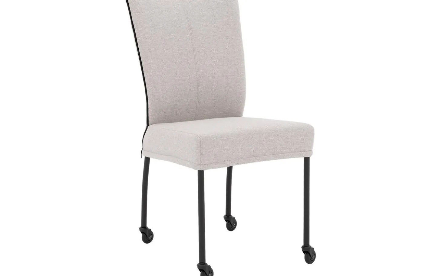Betrachten Sie den Esszimmerstuhl Funk! Dieser graue Esszimmerstuhl ohne Armlehne verbindet modernes Design mit praktischem Komfort. Der fein gewebte Bezug in Hellgrau verleiht dem Stuhl eine frische und zeitlose Ausstrahlung, die zu verschiedenen Einrichtungsstilen passt. Dank der praktischen Rollen gleiten Sie mühelos an den Tisch und stehen nach dem Essen einfach auf – ideal für gemütliche Essen mit Familie und Freunden.