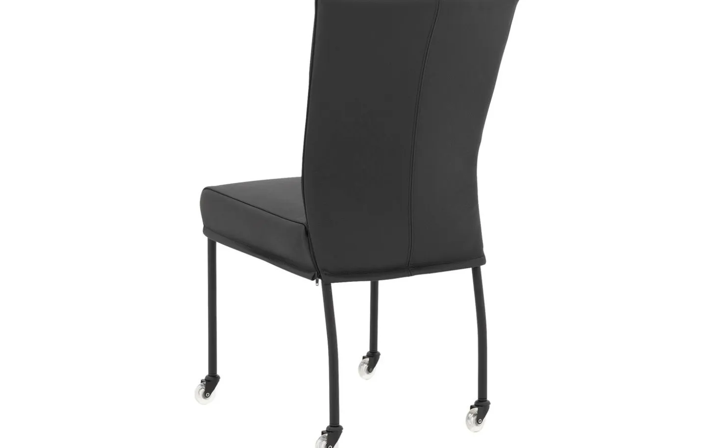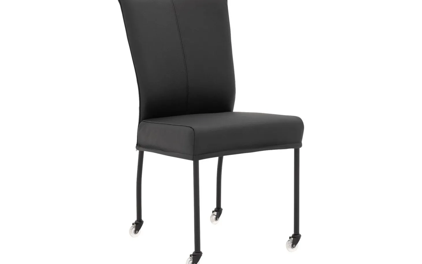 Entdecken Sie den Esszimmerstuhl Funk! Dieser schwarze Lederstuhl kombiniert modernes Design mit praktischem Komfort. Der luxuriöse dicke Master-Lederbezug verleiht dem Stuhl eine zeitlose Ausstrahlung, während die handwerkliche Polsterung für jahrelanges stilvolles Dinieren sorgt. Das schlanke Gestell mit schwarzer Pulverbeschichtung bietet Stabilität, und dank der praktischen Gleitrollen können Sie mühelos am Esstisch Platz nehmen.