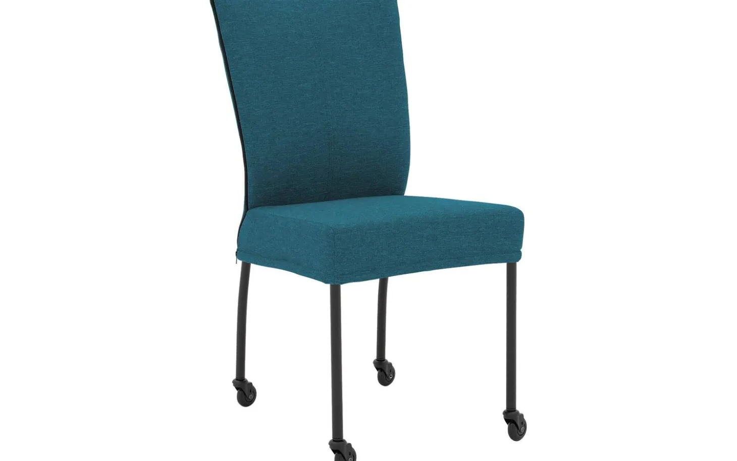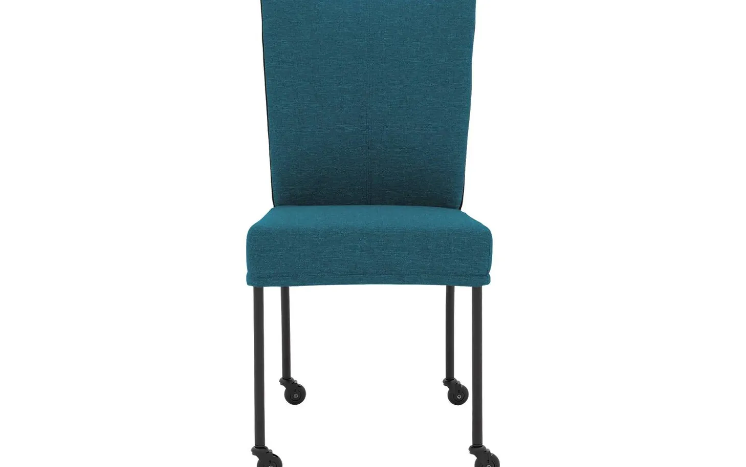 Dank der festen Polsterung hat der Stuhl einen klaren und modernen Look, der jahrelang schön bleibt. Die Kombination aus Petrolblau und schwarzem Rahmen macht diesen Esszimmerstuhl vielseitig und passend für verschiedene Einrichtungsstile, von modern bis industriell.