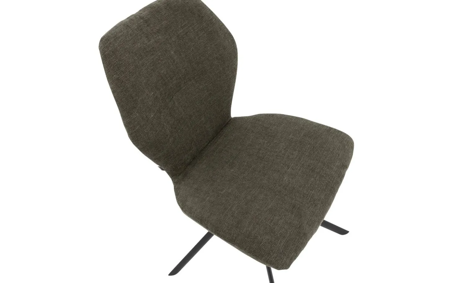 Der dunkelgrüne feingewebte Stoff verleiht dem Esszimmerstuhl Hera eine zeitlose Ausstrahlung, die zu verschiedenen Einrichtungsstilen passt. Das moderne Design wird durch das schlanke Untergestell mit schwarzer Pulverbeschichtung verstärkt, was für ein solides Fundament und einen zeitgemäßen Look sorgt.