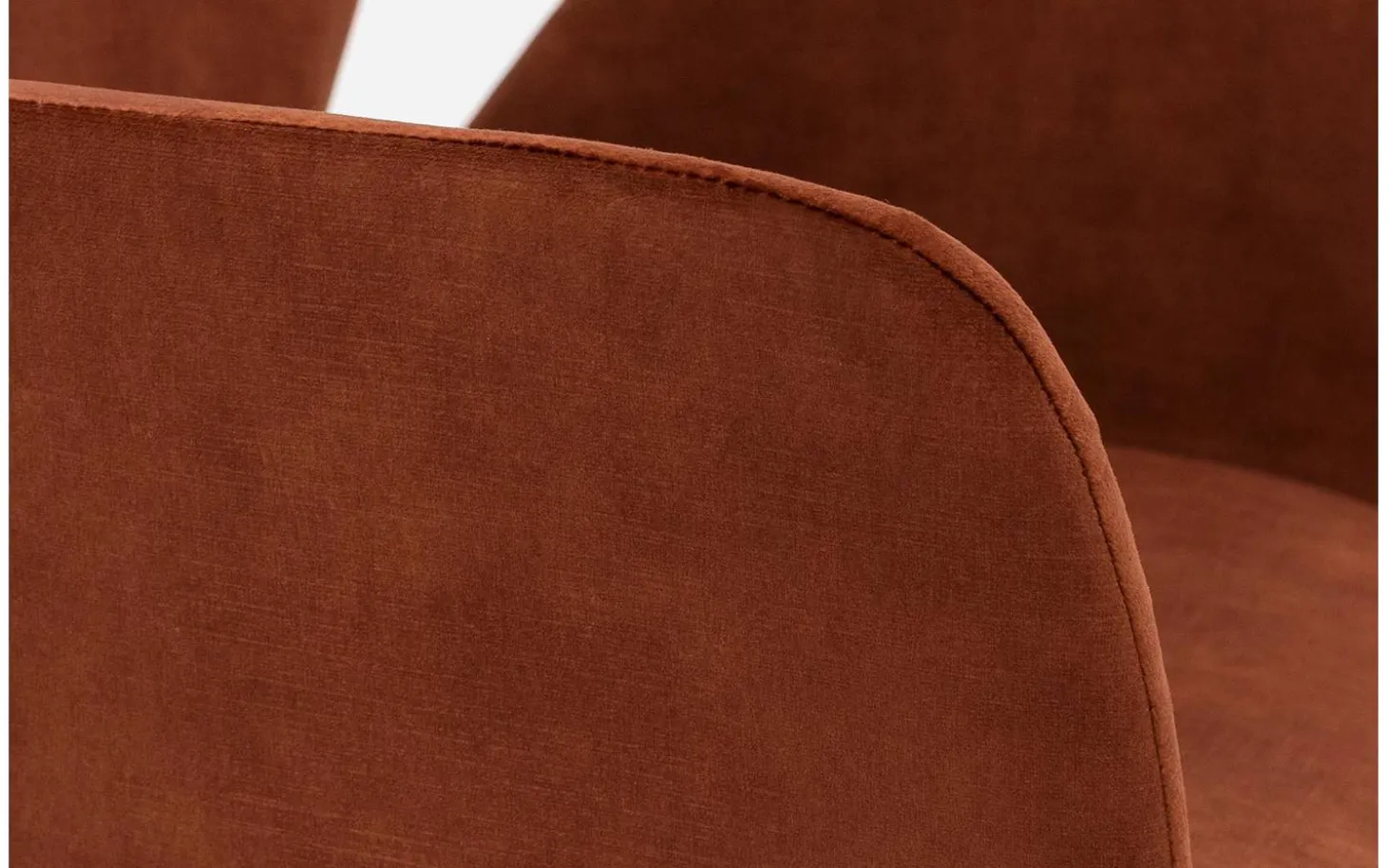 Stilvolle Details dieses kupferfarbenen Esszimmerstuhls mit Armlehne