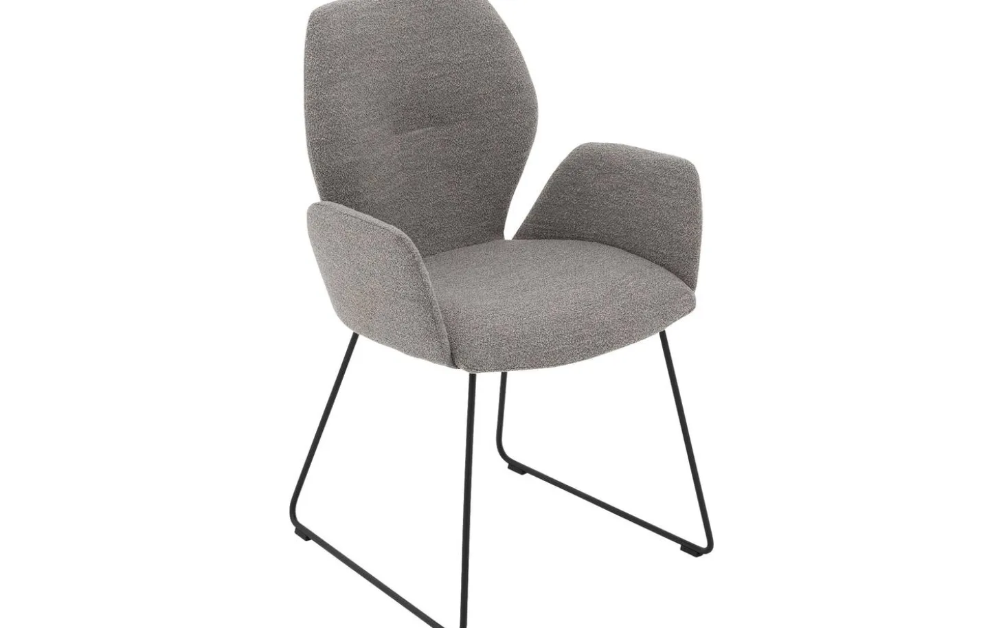 Der graue Esszimmerstuhl Hera mit Armlehne kombiniert zeitgemäßen Komfort mit minimalistischem Design. Der weiche Bouclé-Stoff, auch bekannt als Teddystoff, verleiht diesem Stuhl eine luxuriöse Ausstrahlung, während das schlanke schwarze Gestell für eine moderne Basis sorgt. Perfekt für alle, die einen trendigen grauen Esszimmerstuhl suchen, der Stil und Komfort in einem zeitgemäßen Look vereint.
