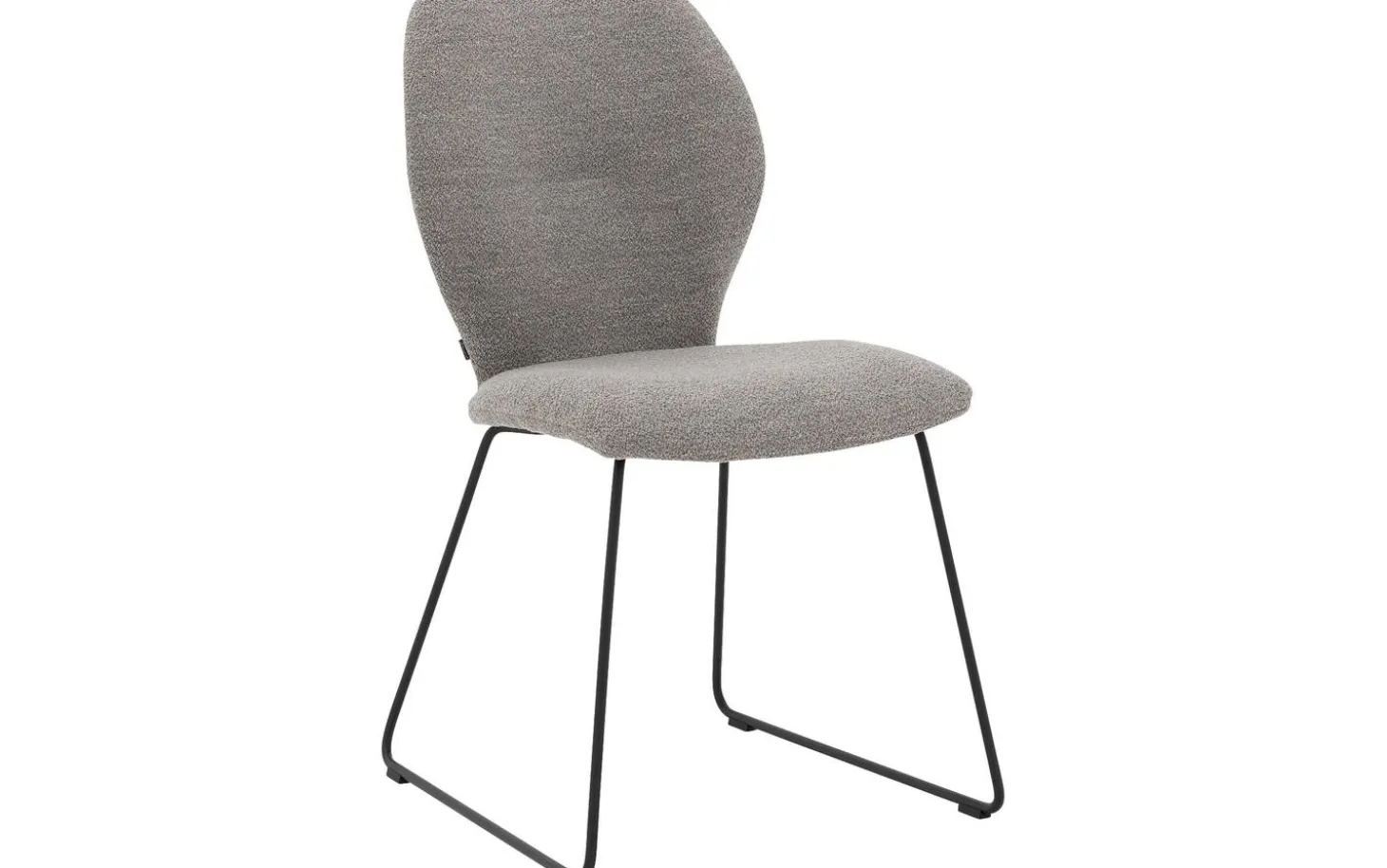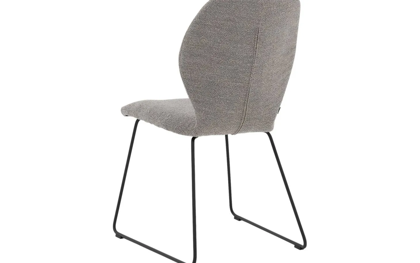 Der Esszimmerstuhl Hera hat eine schlanke, moderne Ausstrahlung durch das klare Gestell mit schwarzer Pulverbeschichtung, die vor Beschädigungen schützt. Der weiche, hellgraue Bouclé-Stoff (auch bekannt als Teddystoff) verleiht diesem Esszimmerstuhl eine trendige und luxuriöse Ausstrahlung, die wunderbar zu verschiedenen Einrichtungsstilen passt.