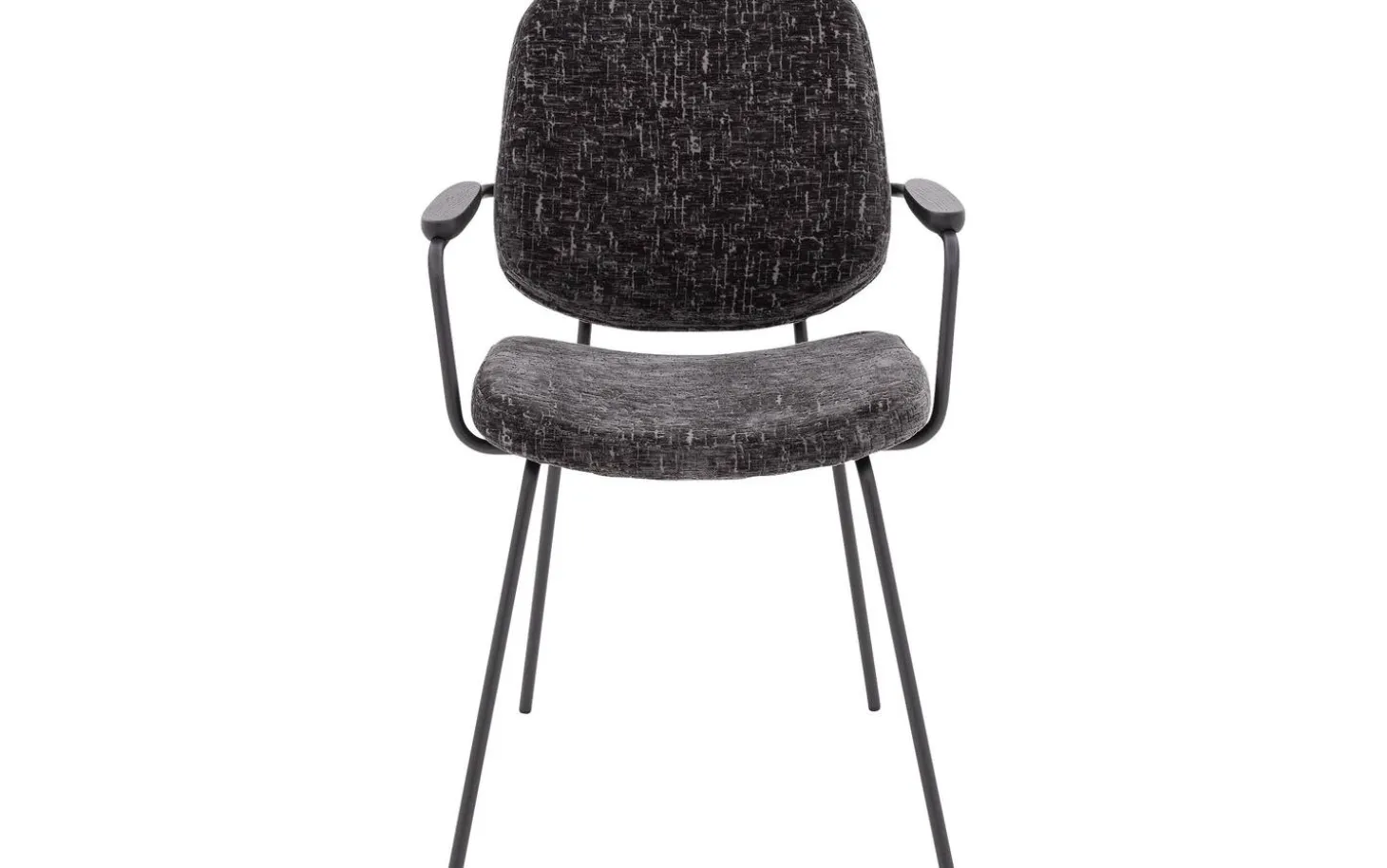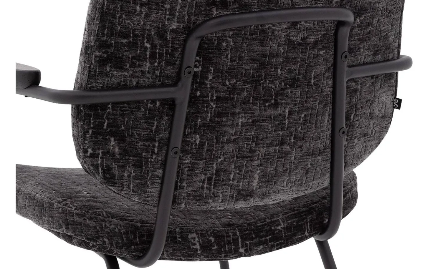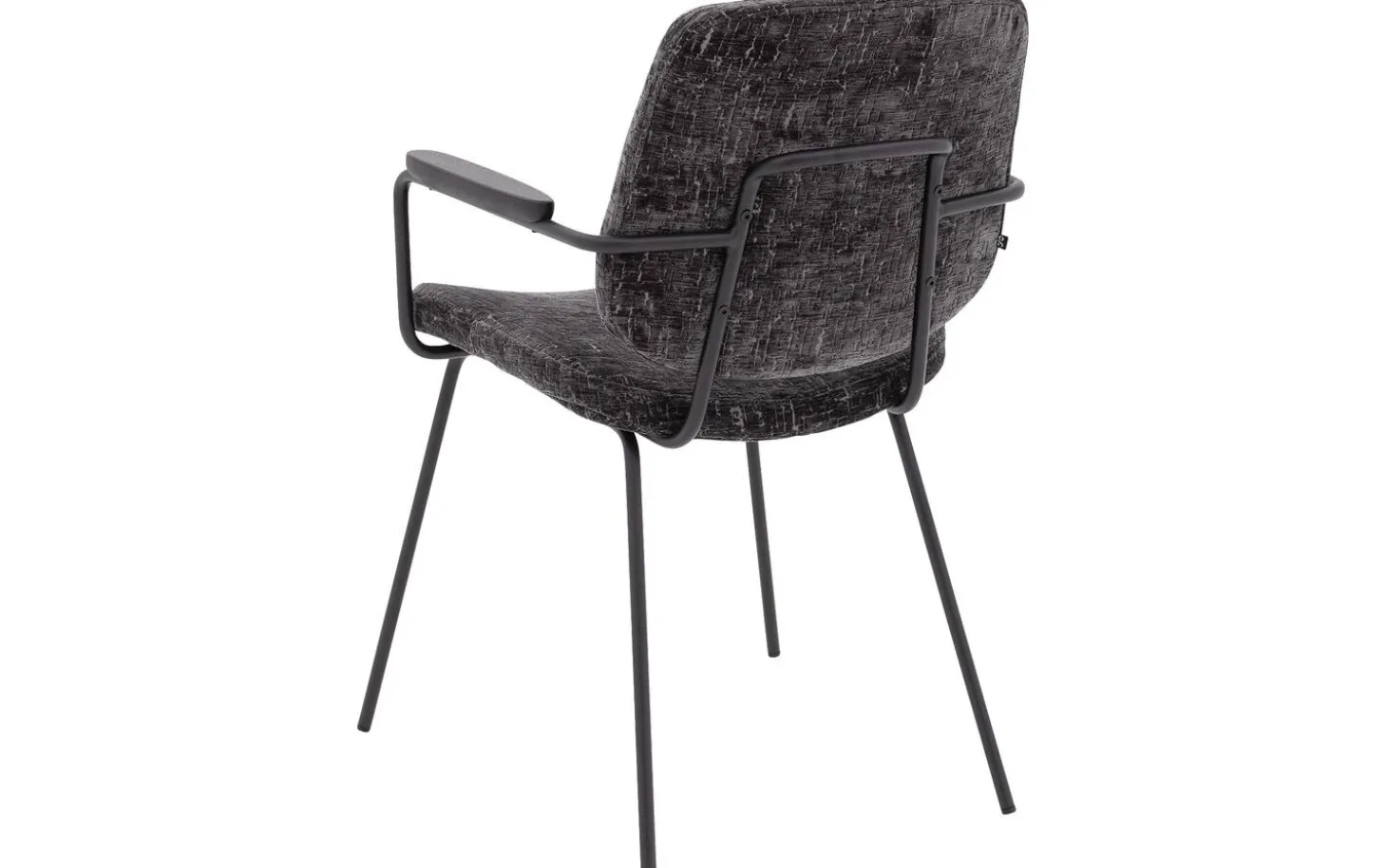 Grauer Esszimmerstuhl Hjalmar mit Armlehne bringt weichen Velours in Ihr Esszimmer. Die abgerundeten Formen und das minimalistische Design verleihen diesem Stuhl aus Stoff eine moderne Ausstrahlung. Der anthrazitgraue Veloursbezug in Kombination mit schwarz pulverbeschichteten Stuhlbeinen sorgt für ein zeitloses Gesamtbild, das perfekt in ein modernes oder elegant-schickes Interieur passt. Drehen Sie sich nach dem Essen um? Dann ist der praktische Handgriff an der Rückenlehne ein nützliches Detail.