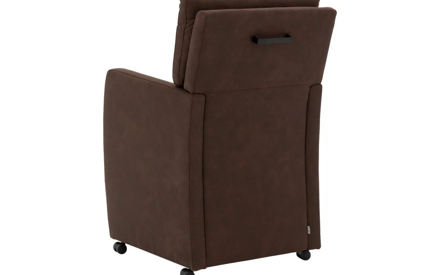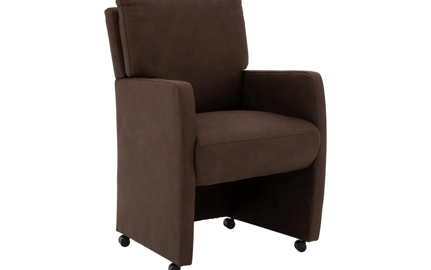 Betrachten Sie den braunen Esszimmerstuhl Leen mit Armlehne! Dieser stilvolle Esszimmerstuhl aus Mikrofaser ist eine wertvolle Ergänzung für Ihre Essecke dank des modernen, zeitlosen Designs. Der warme braune Alcantara-Bezug sorgt für eine stimmungsvolle Ausstrahlung, die sich leicht mit verschiedenen Wohnstilen kombinieren lässt. Nehmen Sie dank der luxuriösen Rollen geschmeidig am Tisch Platz und bewegen Sie den Stuhl einfach mit dem praktischen Griff an der Rückenlehne.