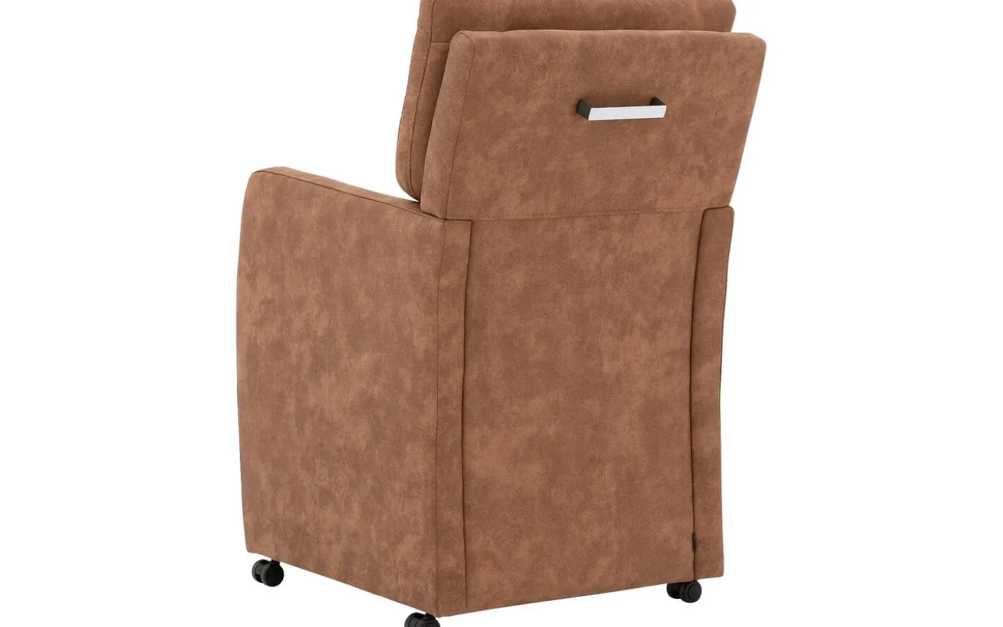 Betrachten Sie den Esszimmerstuhl Leen mit Armlehne! Dieser braune Esszimmerstuhl mit Armlehne ist mit hochwertigem Mikrofaser bezogen für eine warme, stimmungsvolle Ausstrahlung in Ihrem Essbereich. Das moderne, zeitlose Design macht Leen zu einer wertvollen Ergänzung für Ihr Interieur. Dank der praktischen Rollen können Sie mühelos an den Tisch heranrollen und wieder aufstehen. Der praktische Griff an der Rückenlehne macht das Umstellen dieses Stuhls noch einfacher.