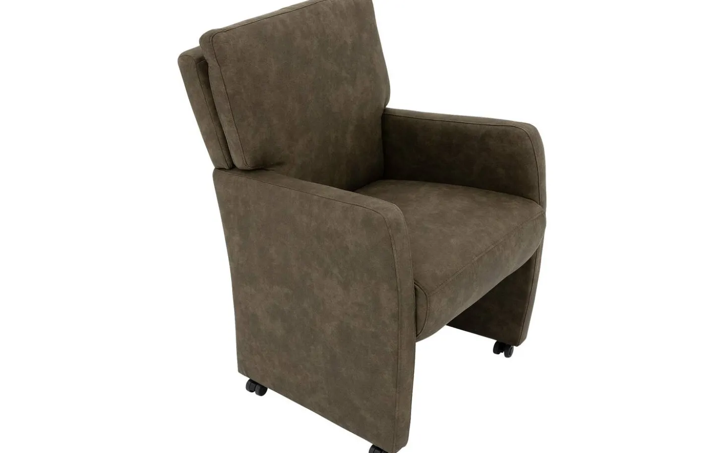 Der grüne Esszimmerstuhl Leen mit Armlehne vervollständigt jeden Essbereich. Dieser Stuhl hat ein modernes und zeitloses Design, das mühelos zu verschiedenen Einrichtungsstilen passt. Der weiche Mikrofaserbezug in Olivgrün sorgt für eine warme und gemütliche Ausstrahlung. Dank der robusten Nosag-Federung im Sitz und der angenehmen Armlehnen genießen Sie optimale Unterstützung, perfekt für stundenlange Tischrunden. Mit den praktischen Rollen können Sie leicht an den Tisch heranrücken und wieder bequem aufstehen.
