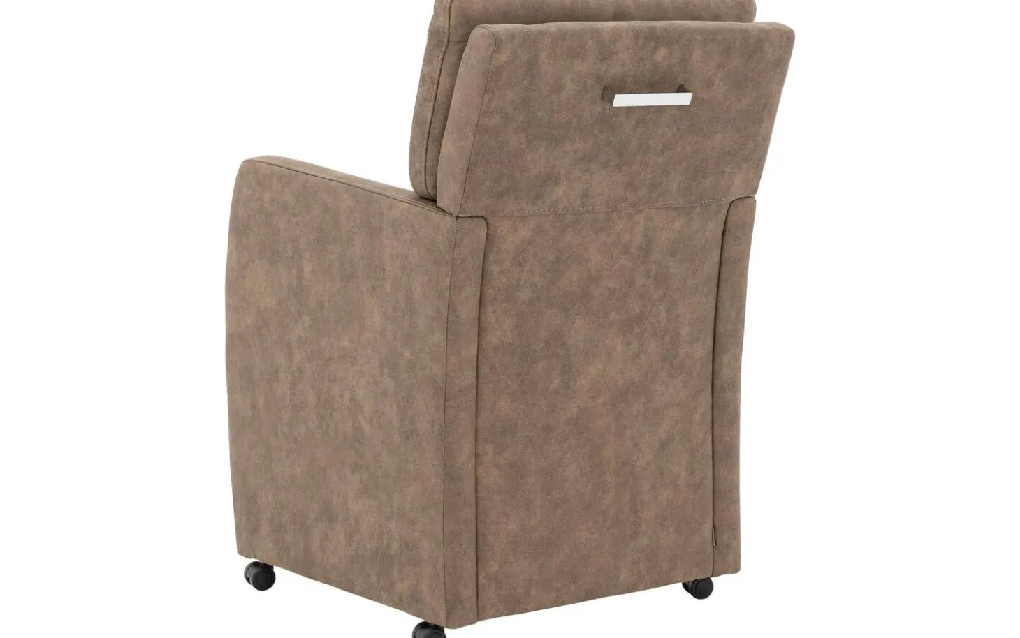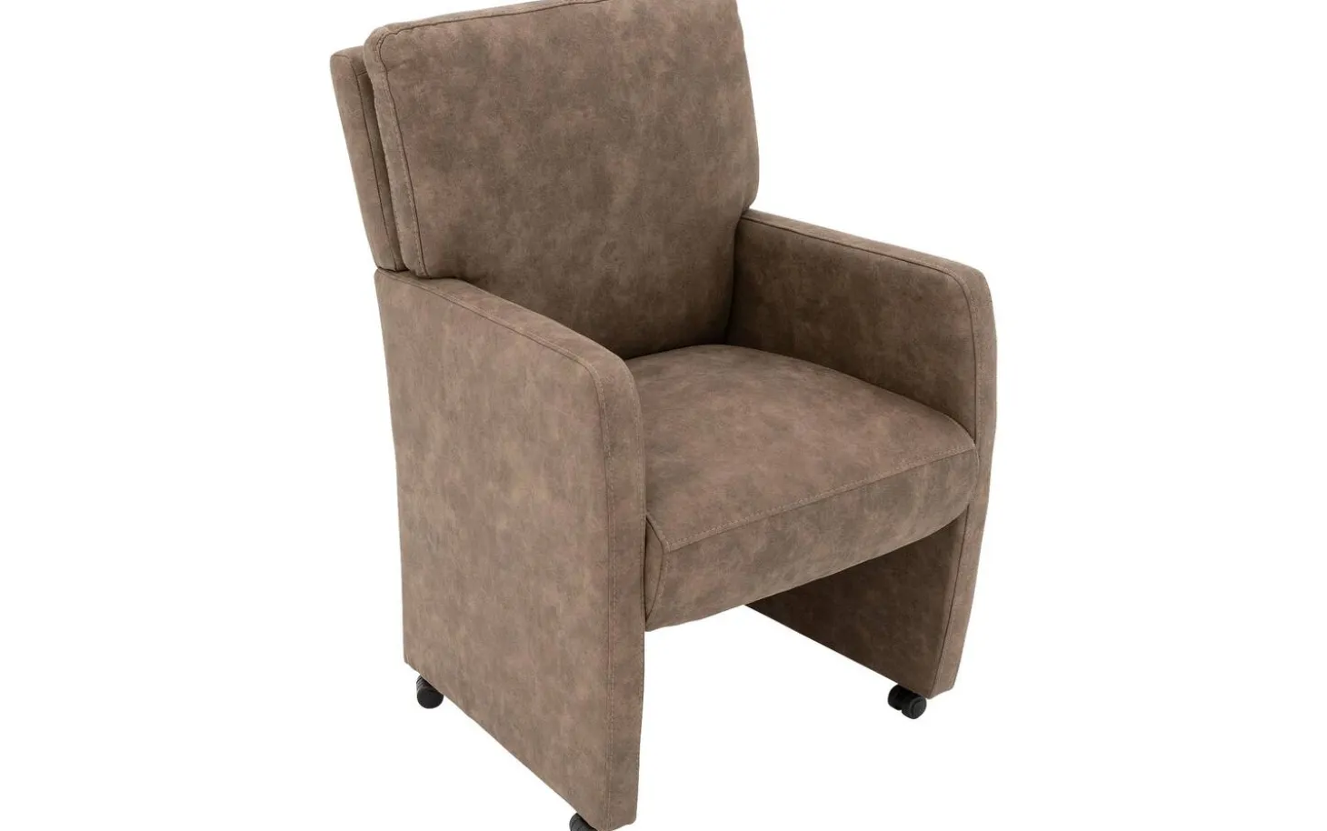 Lernen Sie den braunen Esszimmerstuhl Leen mit Armlehne kennen. Dieser stilvolle Esszimmerstuhl aus Mikrofaser bringt Wärme und Atmosphäre in Ihren Essbereich dank des modernen, zeitlosen Designs. Die angenehmen Armlehnen und die robuste Federung sorgen dafür, dass Sie lange und bequem am Tisch sitzen können. Mit den luxuriösen Rollen und dem praktischen Griff an der Rückseite rücken Sie im Handumdrehen an den Tisch oder bewegen den Stuhl mühelos.