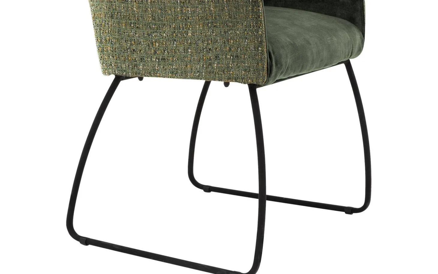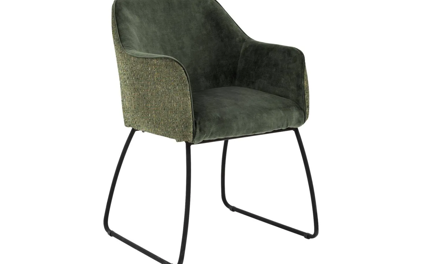 Die schwarz lackierten Beine bilden einen schönen Kontrast zum grünen Stoff und geben dem Stuhl eine moderne Note. Die feste Polsterung sorgt für eine geradlinige Ausstrahlung, die lange schön bleibt. Die Armlehnen sind auf einer angenehmen Höhe von 67 cm platziert für optimale Unterstützung.