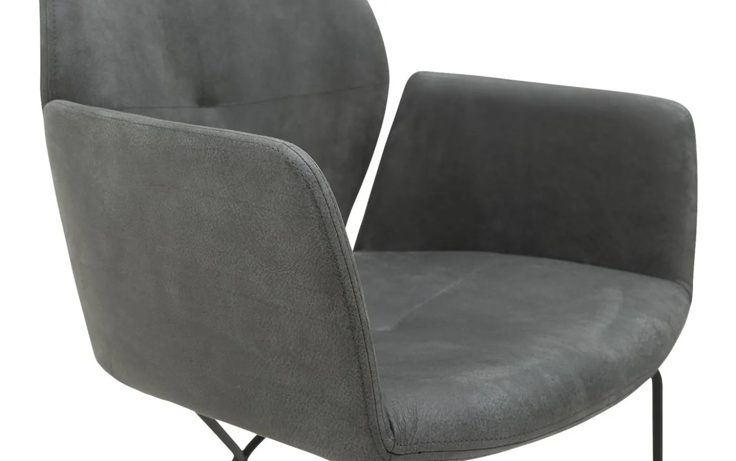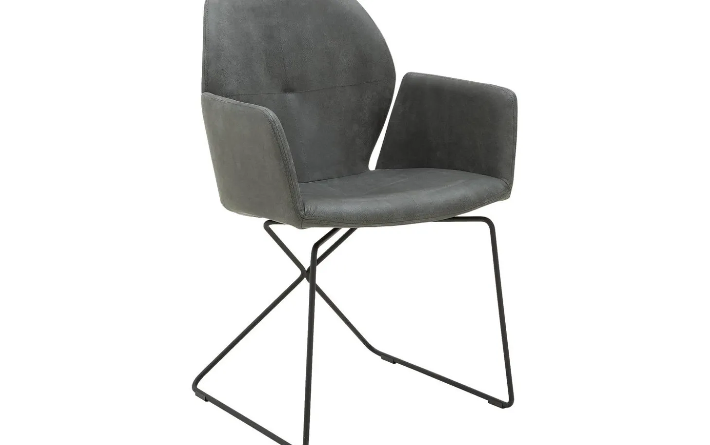 Grauer Esszimmerstuhl Manzini mit Armlehne kombiniert modernes Design mit praktischem Komfort. Dieser Lederstuhl ist ein wunderschönes Designstück mit einem komfortablen Sitz und stilvollen Ziernähten auf der Rückenlehne. Das schlanke pulverbeschichtete Gestell verleiht dem Stuhl einen räumlichen und dezenten Charakter, wodurch er sowohl in großen als auch in kleinen Esszimmern perfekt zur Geltung kommt. Das Büffelleder in Anthrazit sorgt für einen robusten Touch an Ihrem Esstisch.