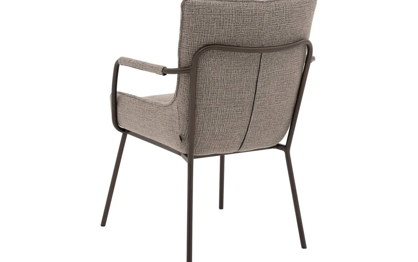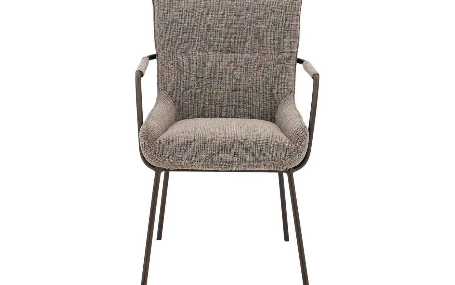 Der stilvolle Esszimmerstuhl Matteo hat eine feste Polsterung, die für einen klaren, modernen Look sorgt. Der fein gewebte Stoffbezug in einem warmen Braunton ist nicht nur schön, sondern auch praktisch für den täglichen intensiven Gebrauch. Die Armlehnen mit einer Höhe von 67 cm bieten zusätzlichen Komfort und Unterstützung während langer Mahlzeiten.