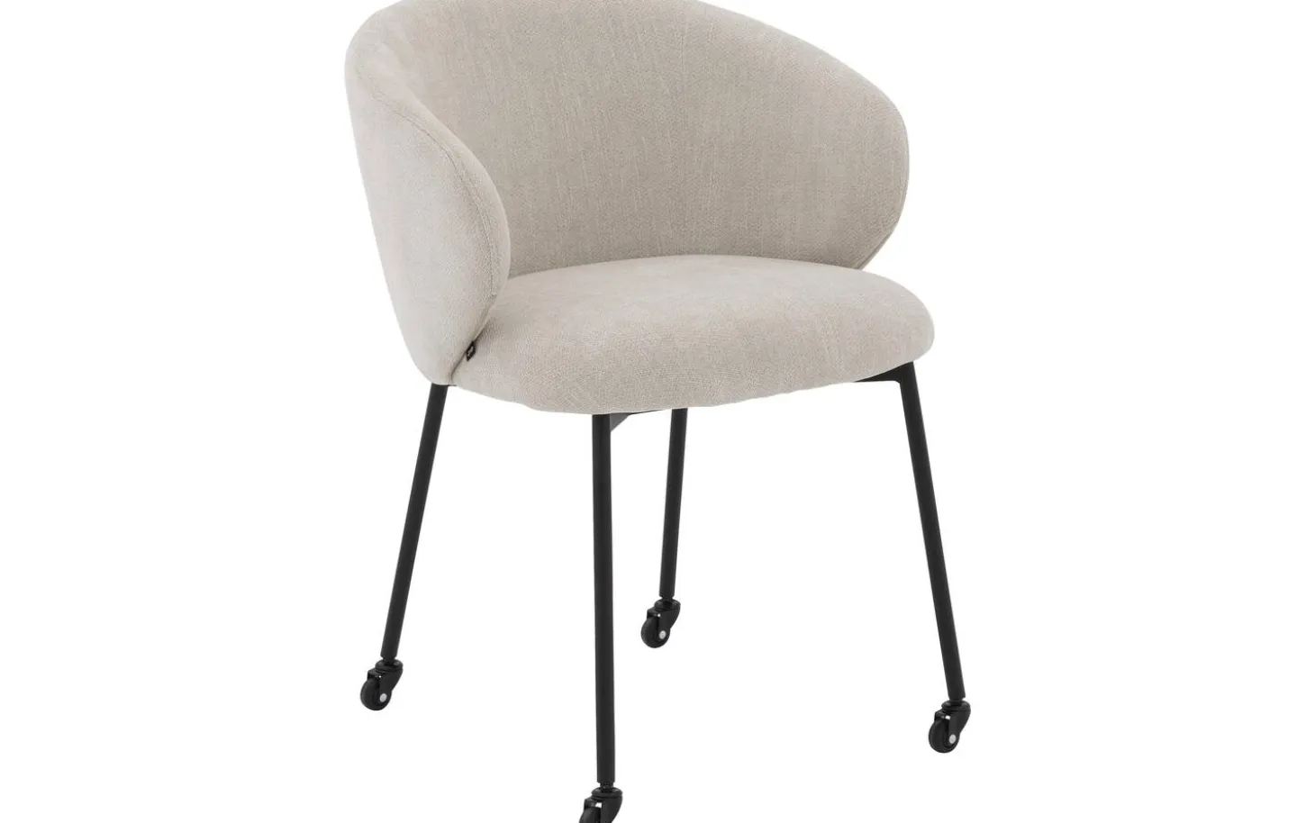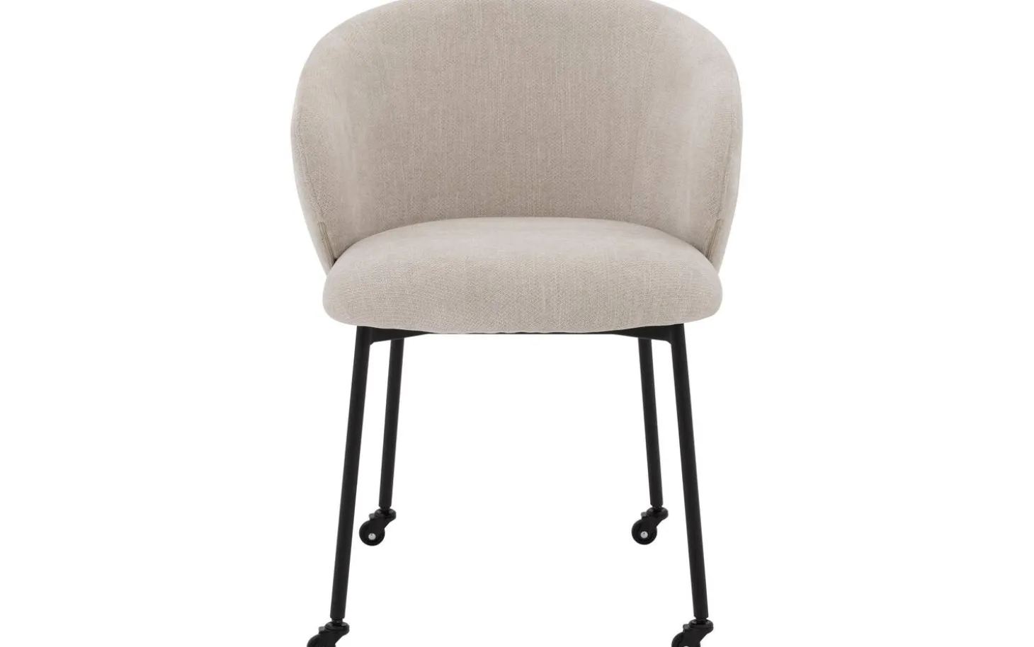 Dieser Stuhl für den Esstisch ist mit einem fein gewebten Stoff im Naturton bezogen, was für eine elegante, leichte Ausstrahlung in Ihrem Esszimmer sorgt. Der Stuhl hat eine fest gepolsterte Sitzfläche und Rückenlehne, was zu einem klaren, modernen Look führt. Das schwarze Untergestell mit Rollen bildet einen schönen Kontrast zum hellen Bezug.