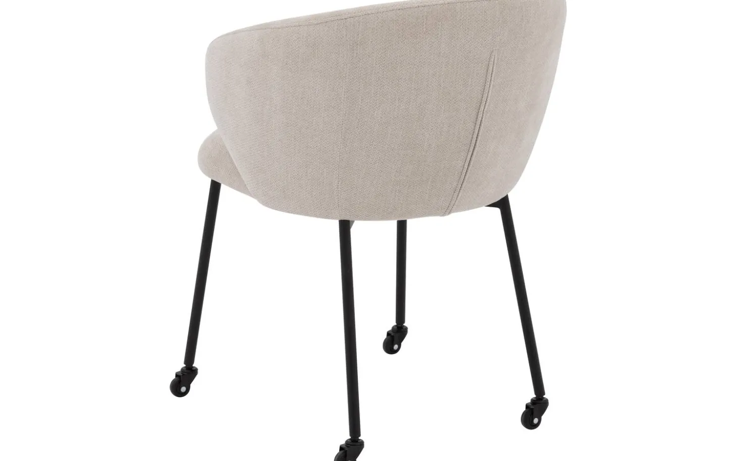 Dank der praktischen Rollen an den schwarzen Beinen des Esszimmerstuhls Noomi können Sie leicht an den Tisch heran- und vom Tisch wegrollen. Dies macht den Stuhl nicht nur komfortabel, sondern auch sehr funktional im täglichen Gebrauch. Mit einer niedrigen Rückenlehne von weniger als 95 cm passt dieser Stuhl perfekt unter die meisten Esstische.