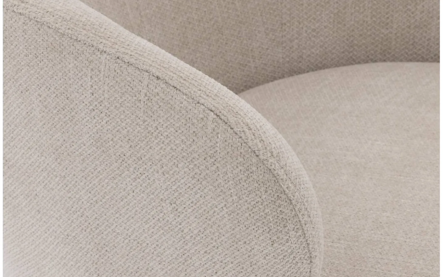Der weiße Esszimmerstuhl Noomi mit Armlehne bietet Komfort und zeitgemäßes Design für Ihren Essbereich. Die charakteristische runde Rückenlehne umschließt Ihren Körper auf ergonomische Weise, perfekt für gemütliche Essen mit Freunden und Familie. Dieser Stuhl aus Stoff im Naturton verfügt über eine fein gewebte Struktur, die nicht nur schön aussieht, sondern auch langlebig für den täglichen Gebrauch ist.