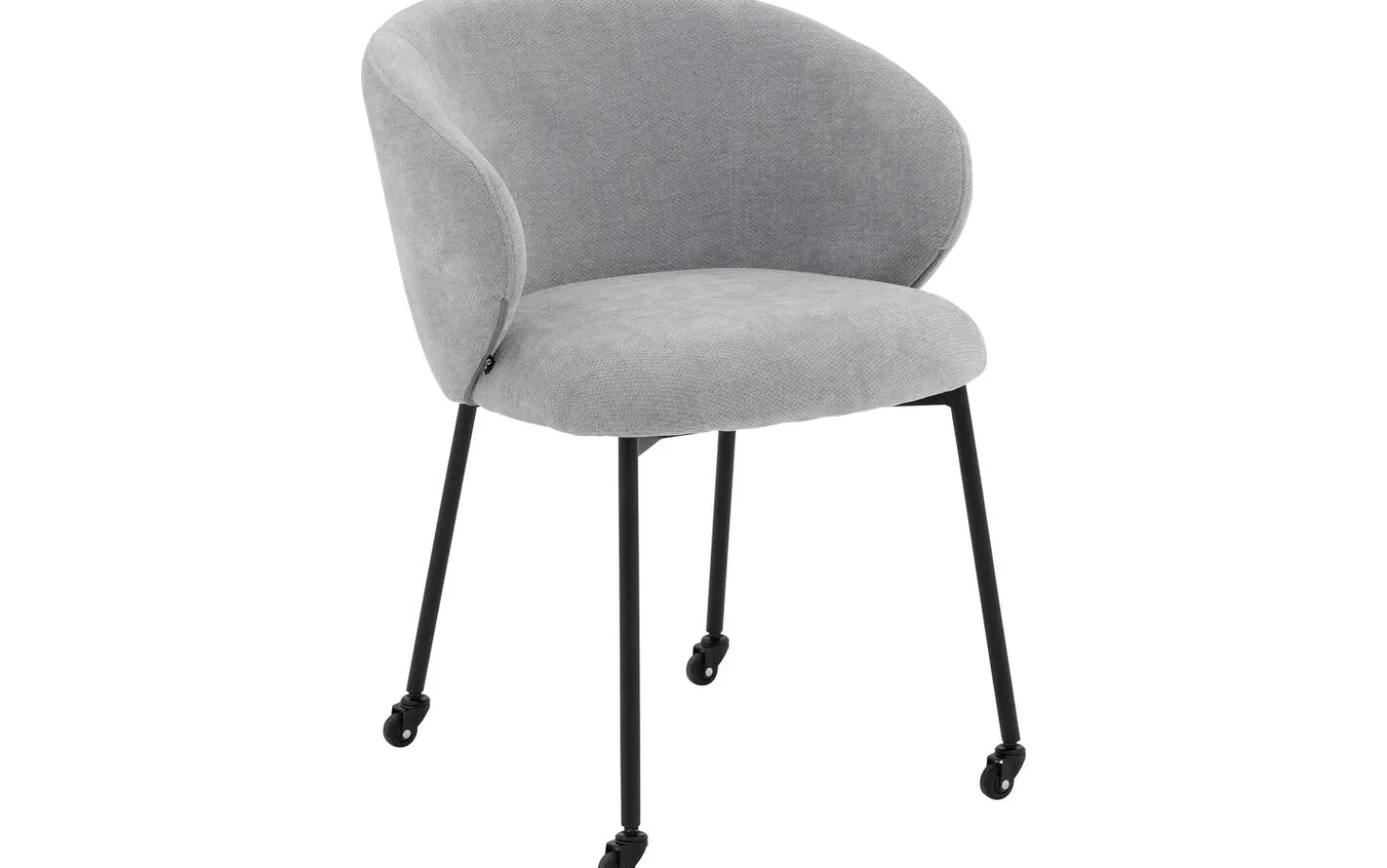 Esszimmerstuhl Noomi ist in einem fein gewebten eisblauen Stoff ausgeführt, der sich weich anfühlt und gleichzeitig langlebig ist. Die feste Polsterung sorgt für ein klares, modernes Erscheinungsbild, das auch nach intensiver Nutzung schön bleibt. Die Armlehnen auf 69 cm Höhe bieten zusätzlichen Komfort und machen den Stuhl komplett.