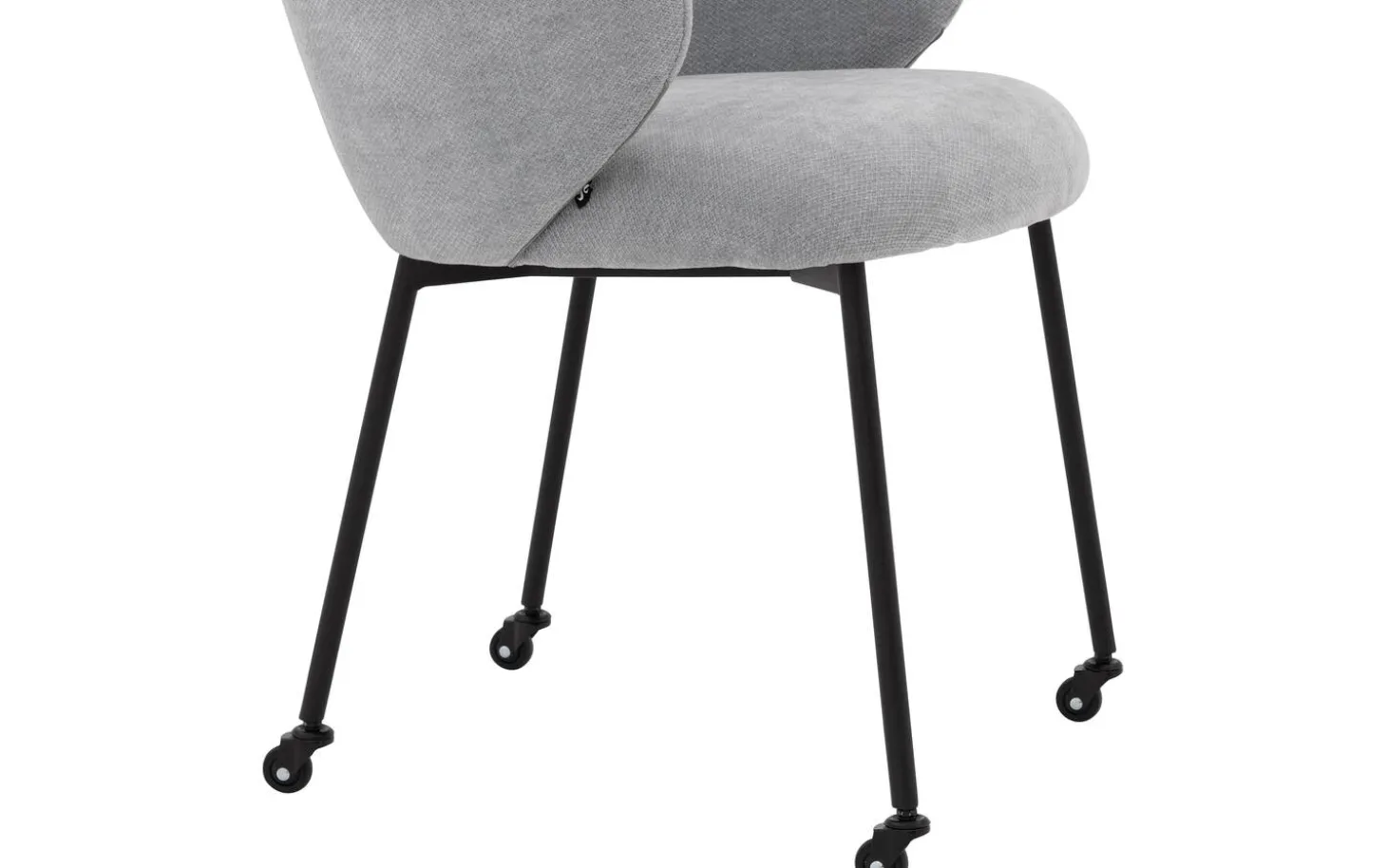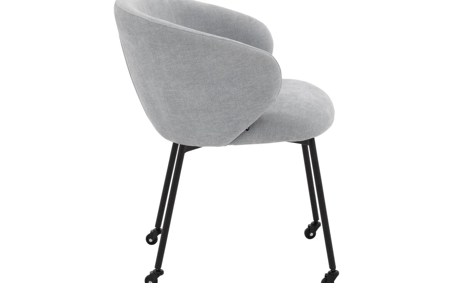 Der blaue Esszimmerstuhl Noomi mit Armlehne bringt Komfort und Charakter an Ihren Esstisch. Dieser Stuhl mit charakteristischer runder Rückenlehne umschließt Ihren Körper während langer Essen. Der eisblau fein gewebte Stoff verleiht dem Stuhl eine zeitgemäße Ausstrahlung, die sofort auffällt. Die praktischen schwarzen Rollen machen das Heranrücken besonders einfach, sodass Sie nur noch die Gesellschaft und das Essen genießen müssen.