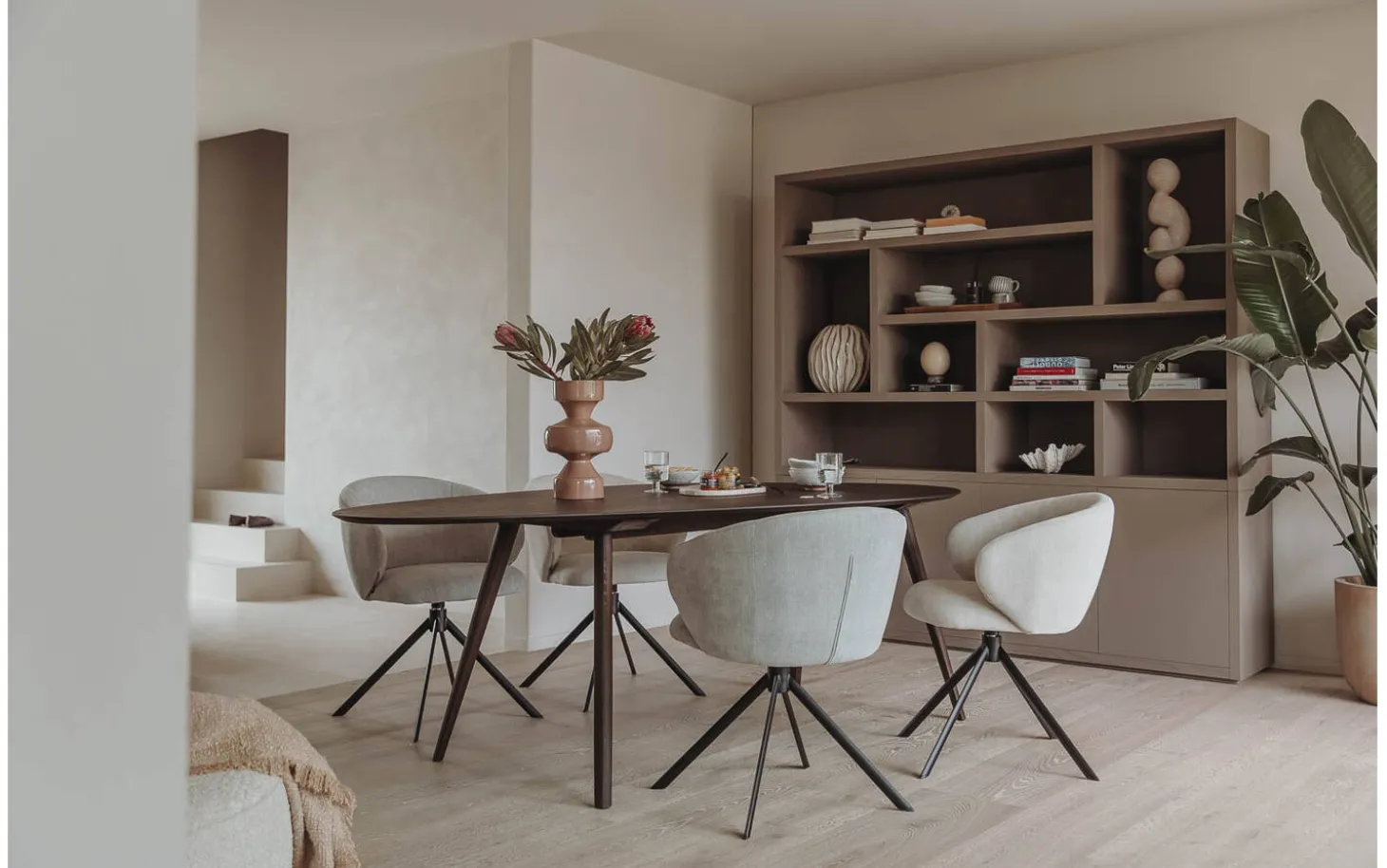Die ergonomisch geformte Rückenlehne und die komfortablen Armlehnen machen diesen Stuhl nicht nur schön, sondern auch funktional. Mit einer Höhe von 76 cm passt Noomi perfekt zu einem Standard-Esstisch. Der drehbare Fuß macht das Heranrücken und Aufstehen einfach, ohne den Boden zu beschädigen.