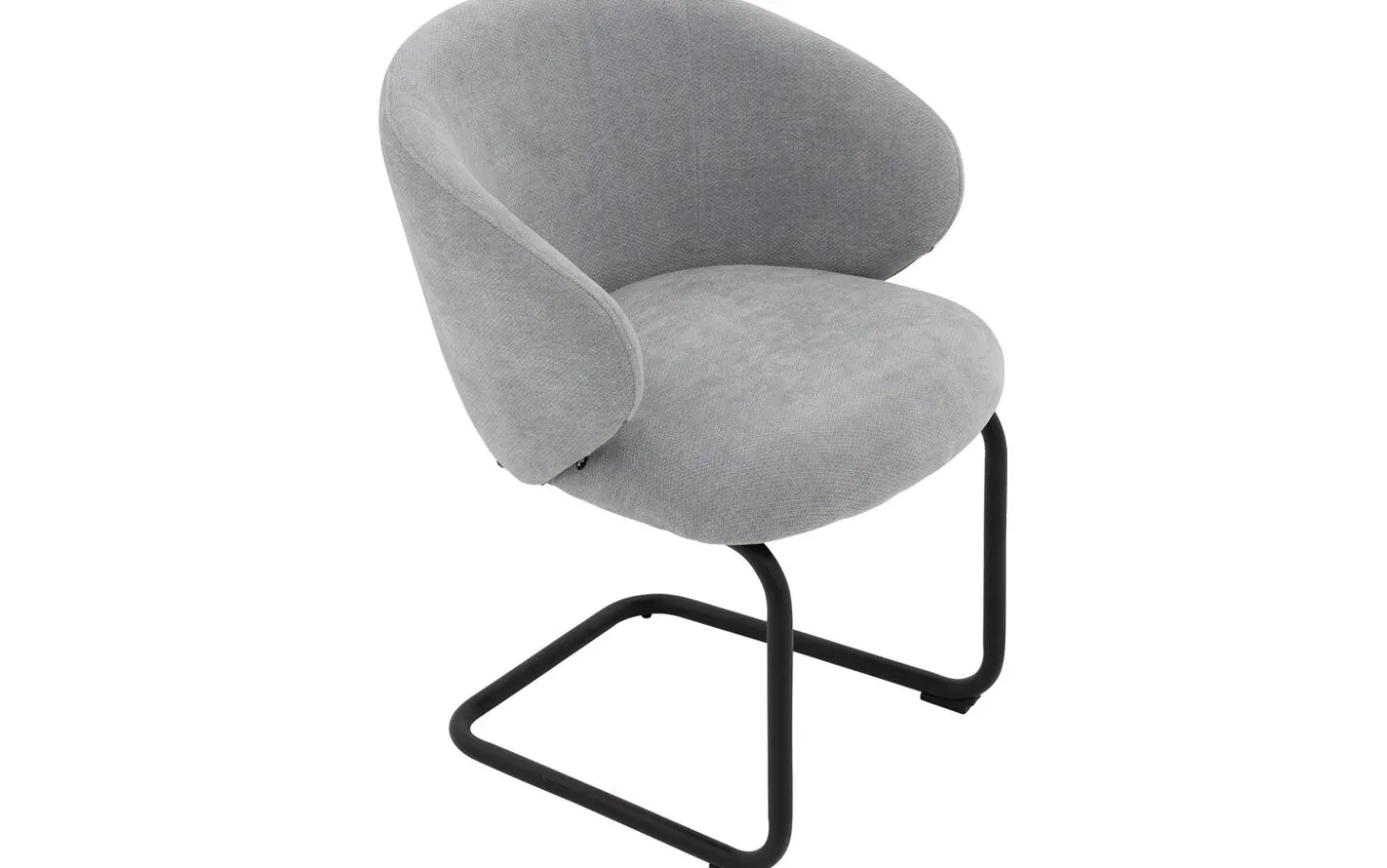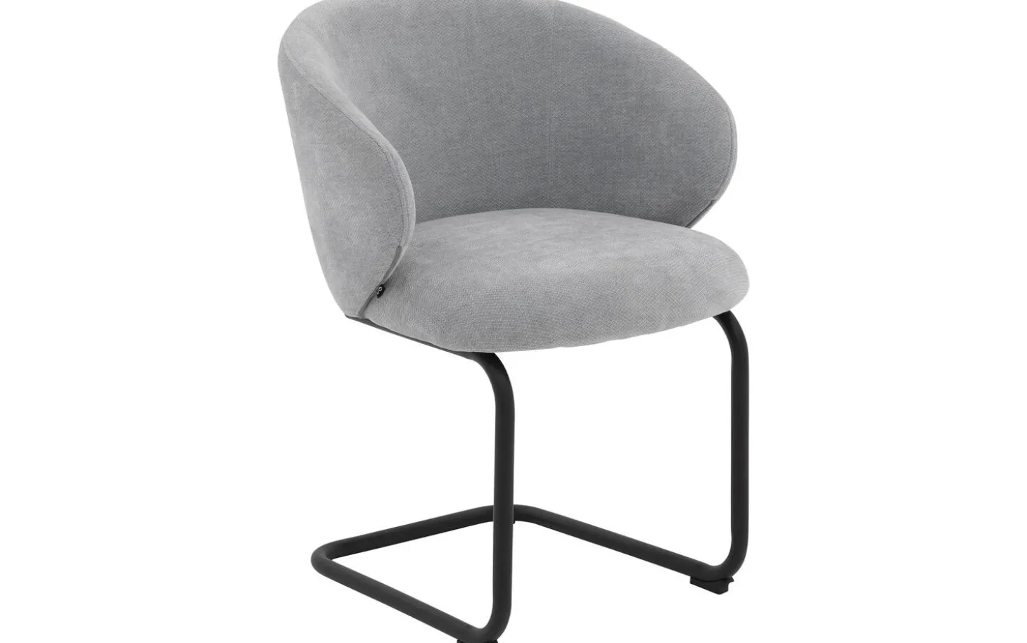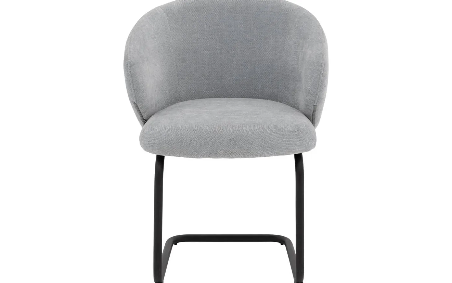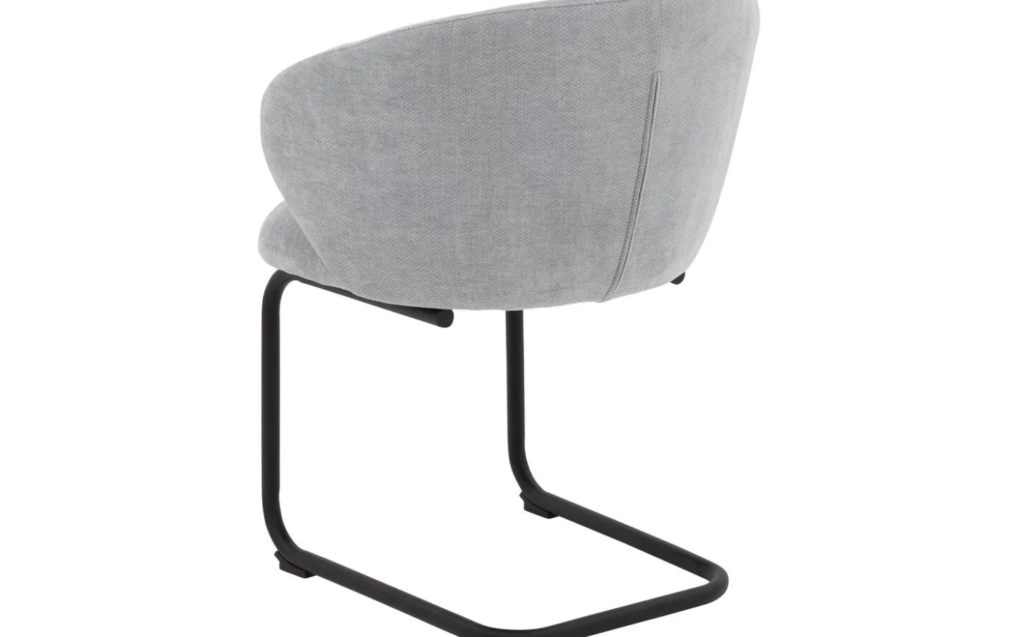 Das schwarze Freischwinggestell mit Pulverbeschichtung sorgt für eine robuste und stabile Basis. Die Kombination aus eisblauem Textil und schwarzem Rahmen macht diesen Esszimmerstuhl vielseitig einsetzbar in verschiedenen Einrichtungsstilen, von skandinavisch bis industriell.