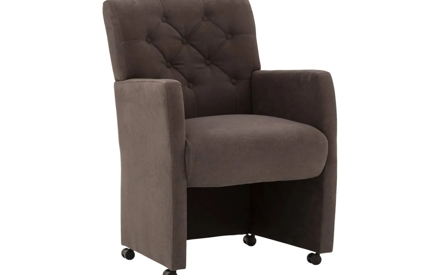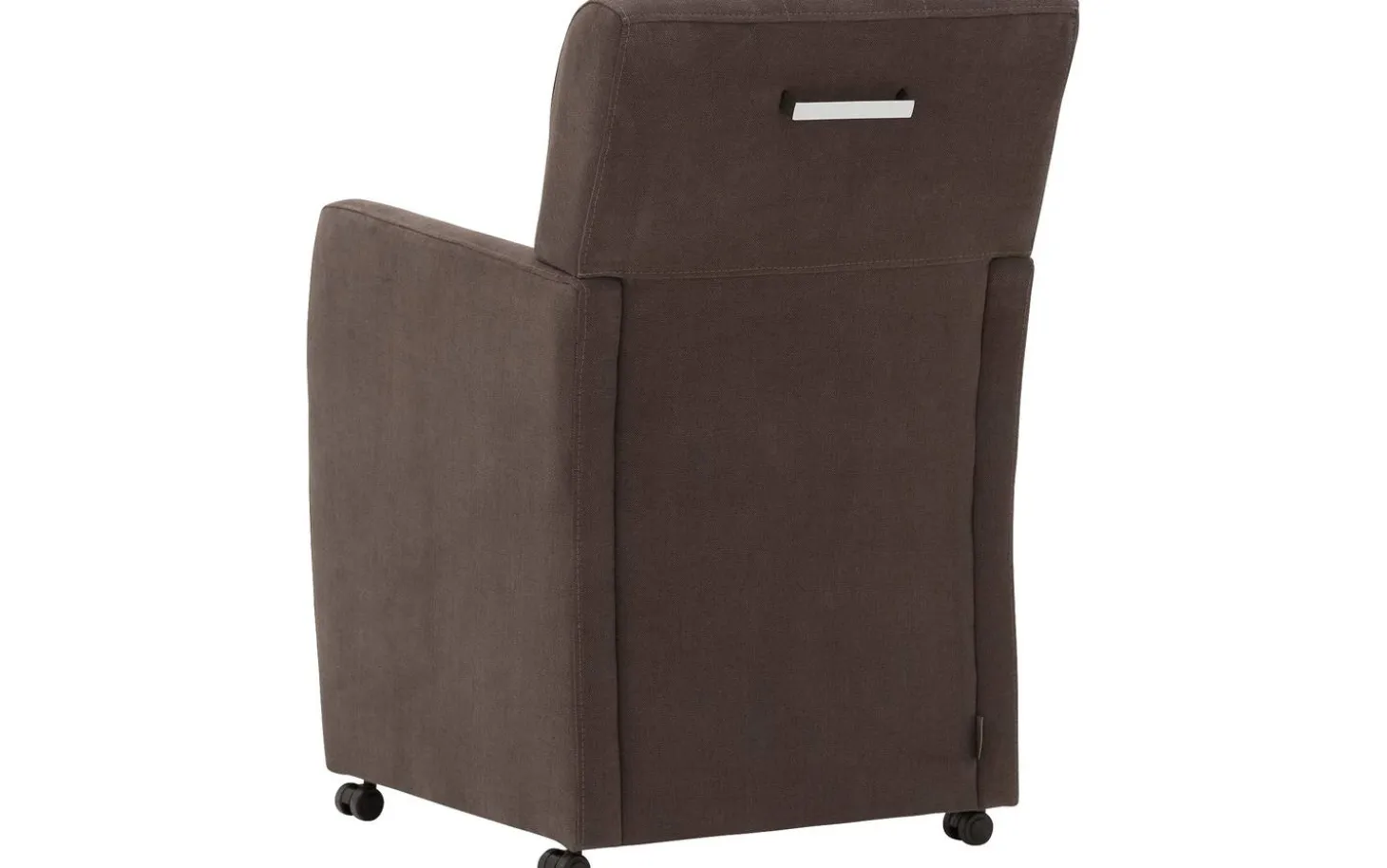 Entdecken Sie unseren braunen Esszimmerstuhl Oliver mit Armlehne. Dieser stilvolle Esszimmersessel mit fein gewebtem Stoff sorgt für eine warme Ausstrahlung in Ihrem Esszimmer. Die gepolsterte Rückenlehne verleiht dem Stuhl einen charmanten und charakteristischen Look. Mit den praktischen Rollen rutschen Sie mühelos an den Tisch und stehen in einer fließenden Bewegung wieder auf. Der Griff macht das Umstellen des Stuhls noch einfacher.