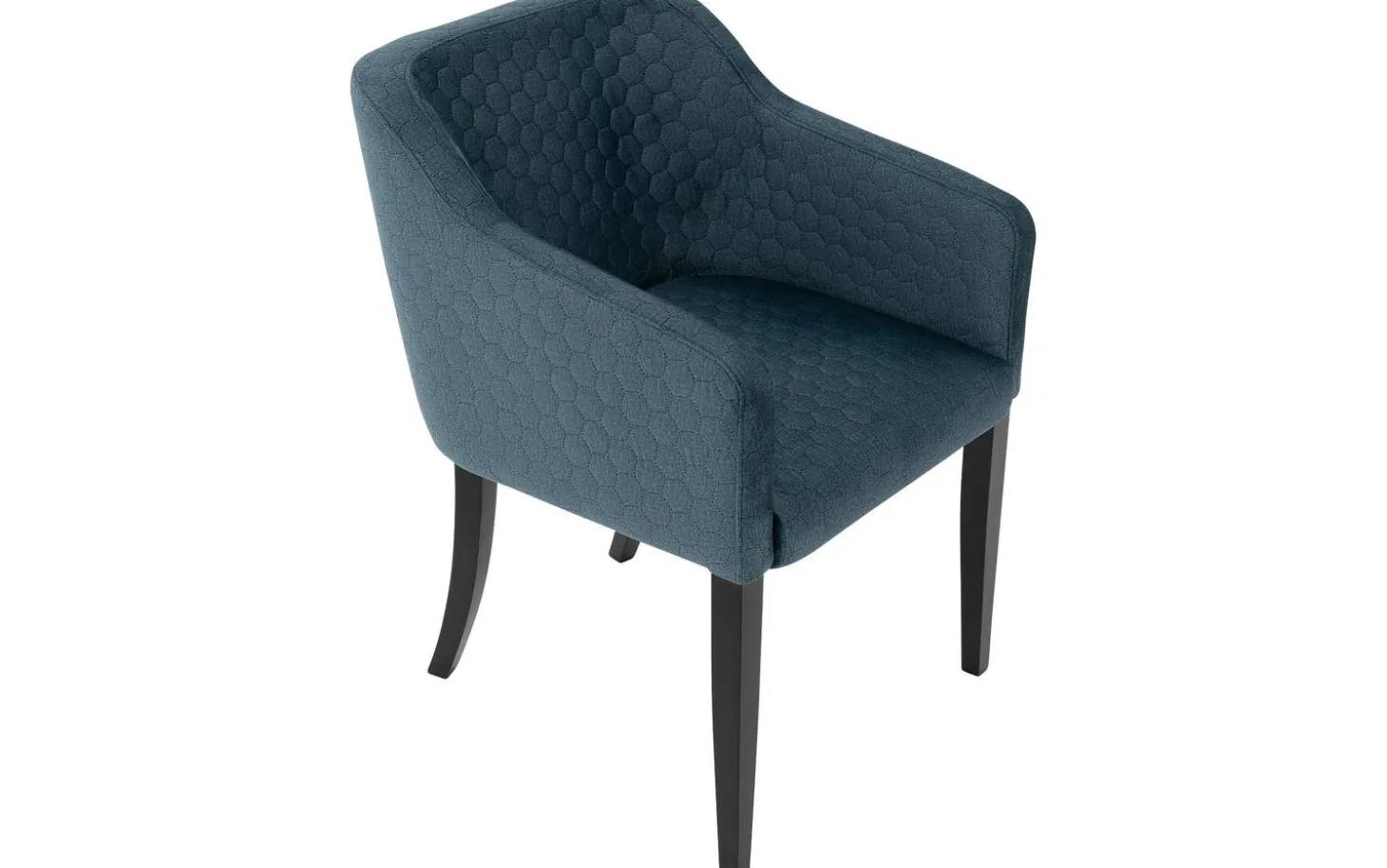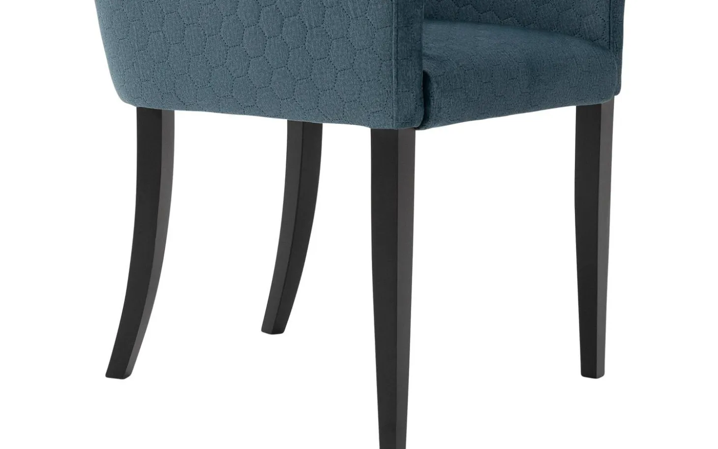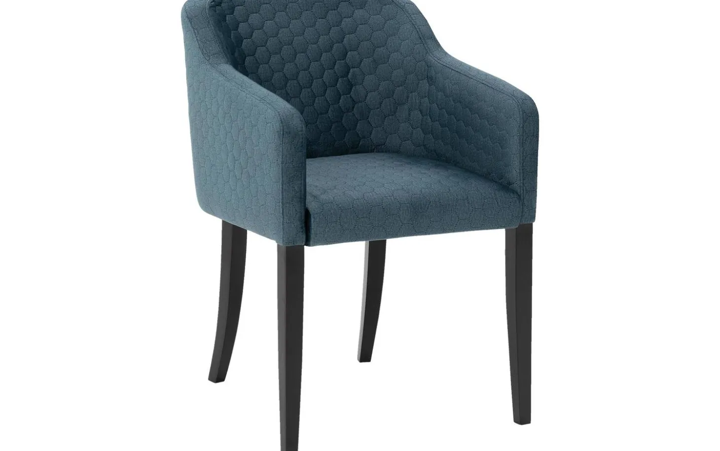 Der blaue Esszimmerstuhl Peda mit Armlehne bietet stilvollen Sitzkomfort an Ihrem Esstisch. Der elegante Veloursüberzug in Monolith 76 Blau fühlt sich herrlich weich an und schafft direkt eine warme, gemütliche Atmosphäre in Ihrem Essbereich. Die besondere Wabensteppung an der Rückenlehne verleiht diesem Stuhl eine luxuriöse Ausstrahlung, die perfekt in ein modernes Interieur passt. Mit den schlanken schwarzen Beinen und praktischen Armlehnen genießen Sie lange Abendessen mit Familie und Freunden in optimalem Komfort.