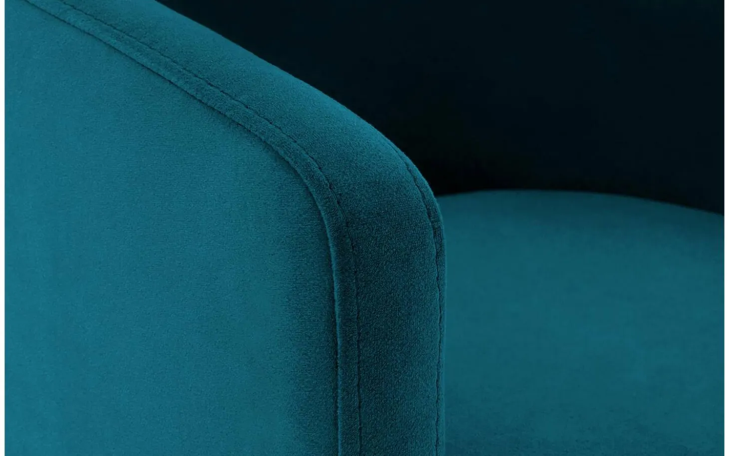 Lernen Sie den blauen Esszimmerstuhl Peda mit Armlehne kennen. Dieser trendige Stuhl mit weicher Velourspolsterung sorgt für eine warme und gemütliche Atmosphäre in Ihrem Essbereich. Der wunderschöne petrolblaue Veloursbezug fühlt sich nicht nur herrlich weich an, sondern verleiht Ihrem Interieur auch sofort eine luxuriöse Ausstrahlung. Mit seinem eleganten Design und den schlanken schwarzen Beinen passt dieser Stuhl perfekt in ein modernes Interieur.
