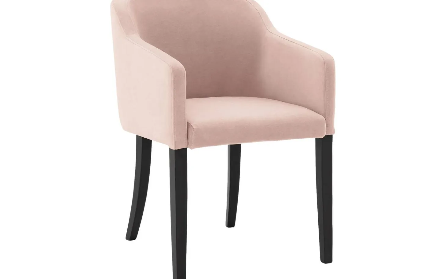 Rosa Esszimmerstuhl Peda mit Armlehne bringt einen eleganten und trendigen Touch in Ihren Essbereich. Dieser Stuhl aus Stoff mit seinem hellrosa Samtbezug fügt Ihrem Interieur sofort Atmosphäre hinzu. Der Stuhl hat sich verjüngende schwarze Beine aus massivem lackiertem Eichenholz, die einen schönen Kontrast zur weichen Polsterung bilden. Perfekt für lange Dinner und gemütliche Mahlzeiten, bei denen Sie dank der komfortablen Armlehnen auch wunderbar nach dem Essen sitzen bleiben können.