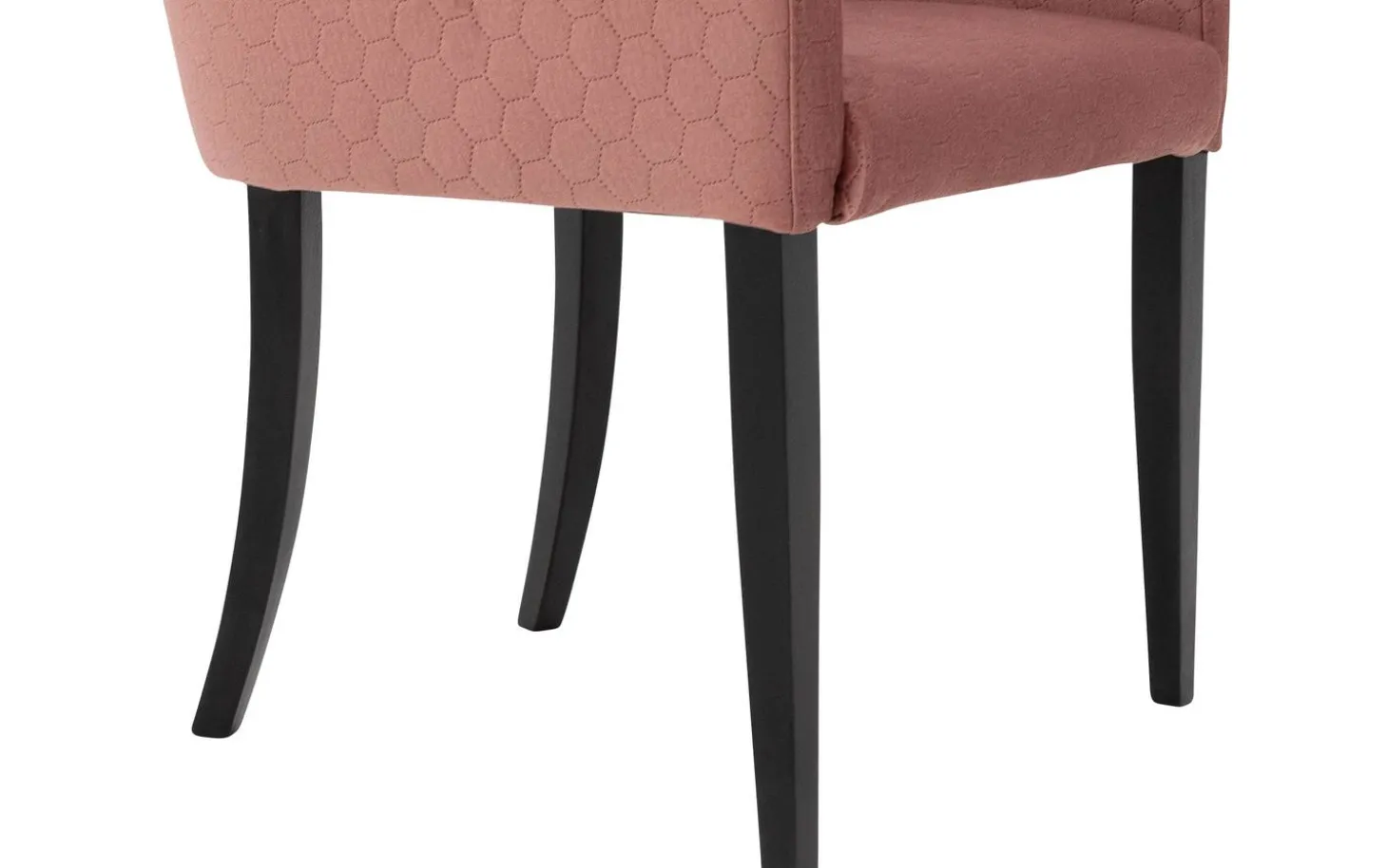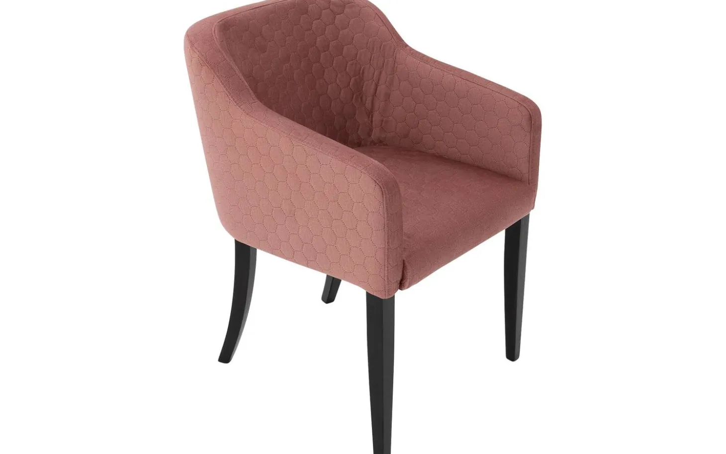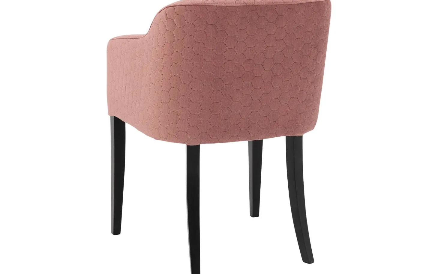 Die elegante Ausstrahlung des Esszimmerstuhls Peda wird durch die konisch zulaufenden schwarzen Beine verstärkt, die einen schönen Kontrast zum weichen rosa Velourbezug bilden. Die besondere Wabennaht in der Rückenlehne verleiht dem Stuhl einen einzigartigen Charakter und sorgt für einen stilvollen Akzent in Ihrer Essecke.