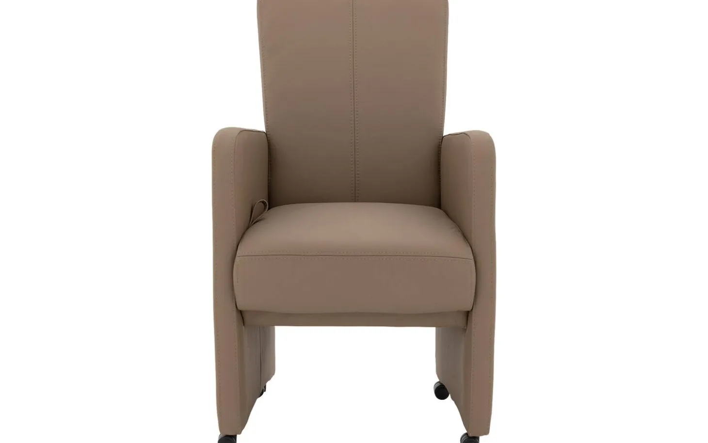 Der grüne Esszimmerstuhl Riva mit Armlehne bietet optimalen Tischkomfort mit seinem modernen Design und praktischen Eigenschaften. Dieser Stuhl aus der Goossens Wohnen Excellent Kollektion ist handwerklich mit weichem, strapazierfähigem Masterleder in einer zeitlosen armeegrünen Farbe gepolstert. Die verstellbare Rückenlehne und luxuriöse Rollen machen diesen Stuhl besonders funktional – gleiten Sie leicht an den Esstisch und genießen Sie stundenlange Unterhaltungen.