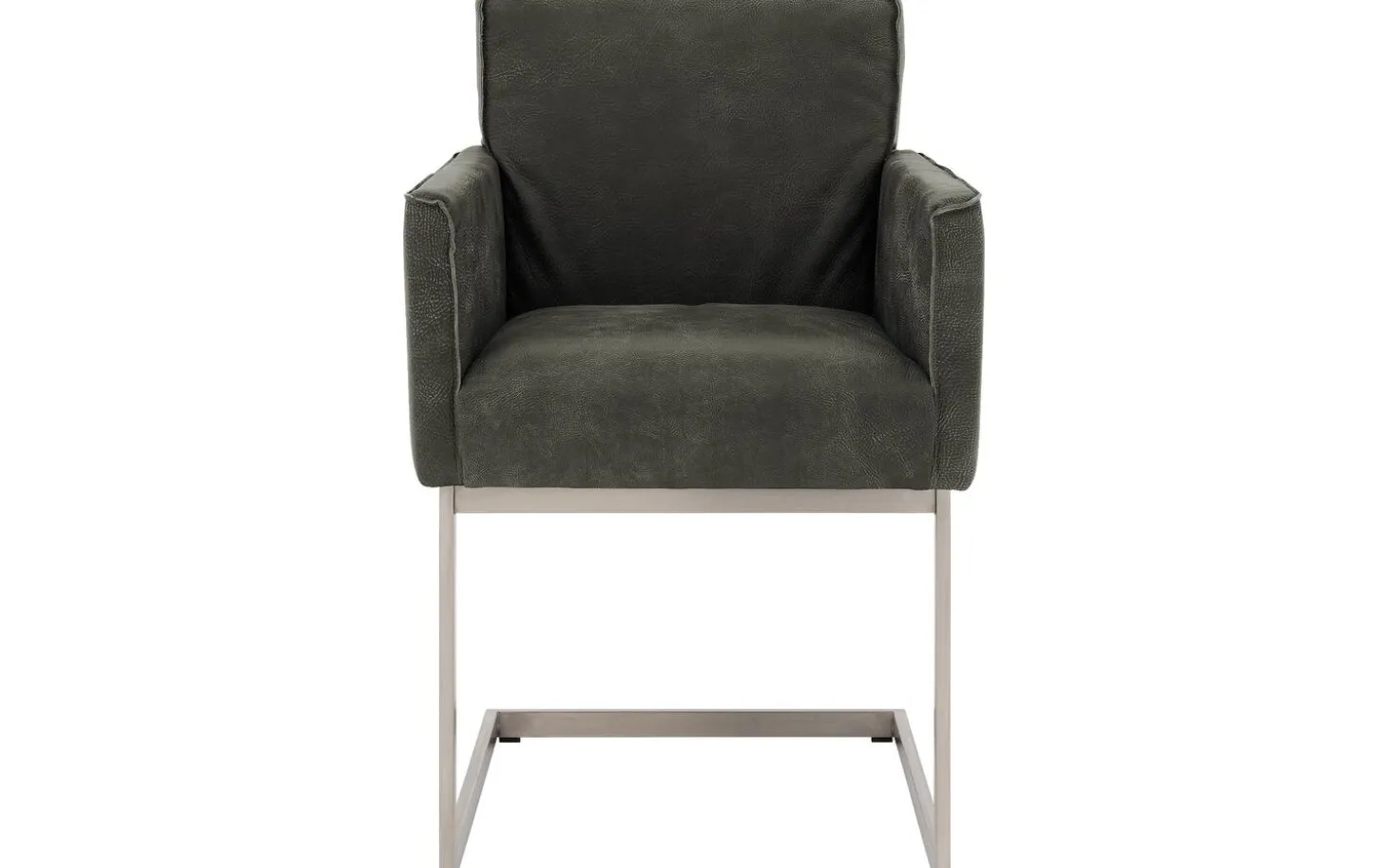 Der grüne Esszimmerstuhl Tom mit Armlehne bietet industrielle Robustheit an Ihrem Esstisch. Dieser dunkelgrüne Esszimmerstuhl aus Buffalo-Leder fühlt sich herrlich weich an und hat eine robuste, wildlederähnliche Ausstrahlung. Die elegante Kappnaht verleiht diesem Stuhl eine handwerkliche Note. Das Besondere an diesem Stuhl ist das Freischwinggestell aus Edelstahl, das leicht mit Ihren Bewegungen mitfedert, wodurch lange Essen besonders komfortabel werden.