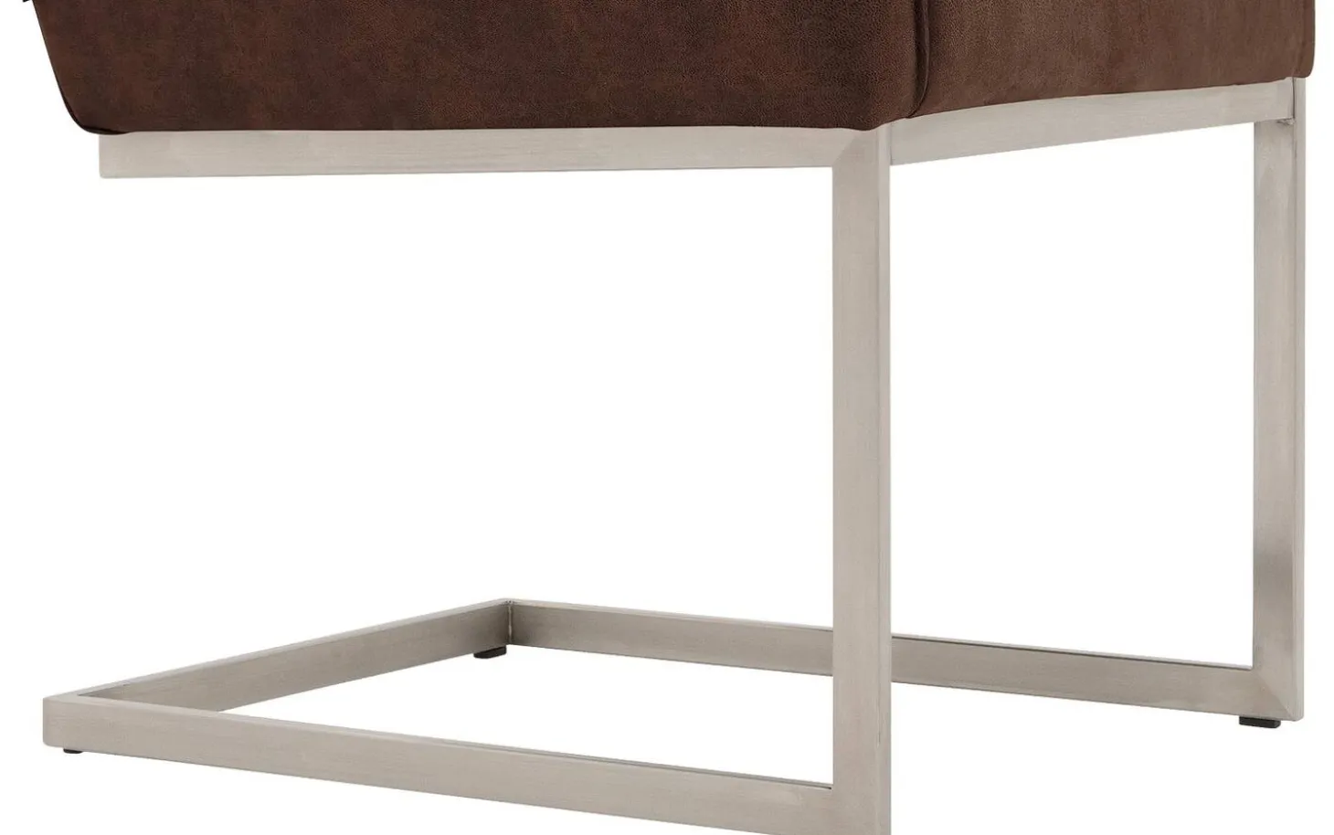 Die stilvollen Edelstahl-Freischwinggestelle verleihen diesem Stuhl einen modernen industriellen Look. Mit bodenschützenden Kappen unter den Füßen bleibt Ihr Boden in perfektem Zustand. Dieser Esszimmerstuhl lässt sich perfekt mit der Esszimmerbank Tom kombinieren, für eine komplette Essecke mit robuster Ausstrahlung.
