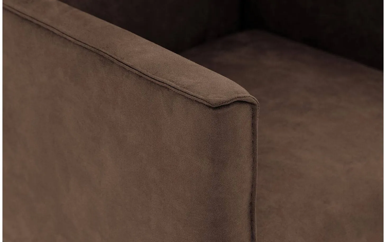 Der braune Mikroleder-Bezug verleiht diesem Esszimmerstuhl eine luxuriöse Ausstrahlung. Dieses Material vereint das Beste aus zwei Welten: Es besteht zu 70% aus echtem Leder und zu 30% aus Polyesterstoff, was für Langlebigkeit und eine weiche Haptik sorgt. Die feste Polsterung gibt dem Stuhl ein modernes und klares Erscheinungsbild.