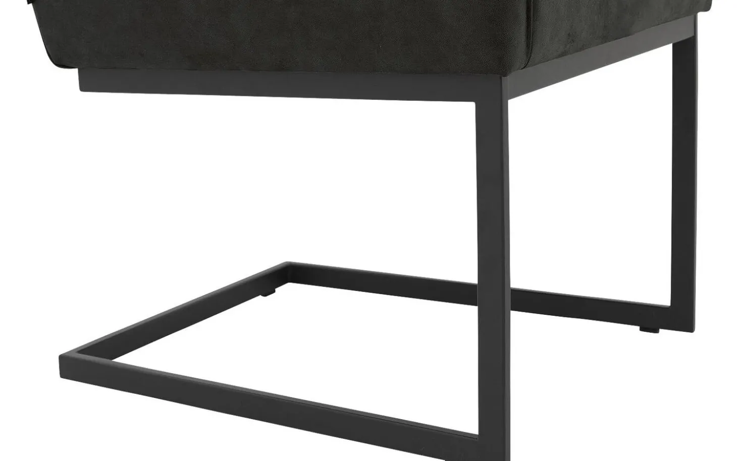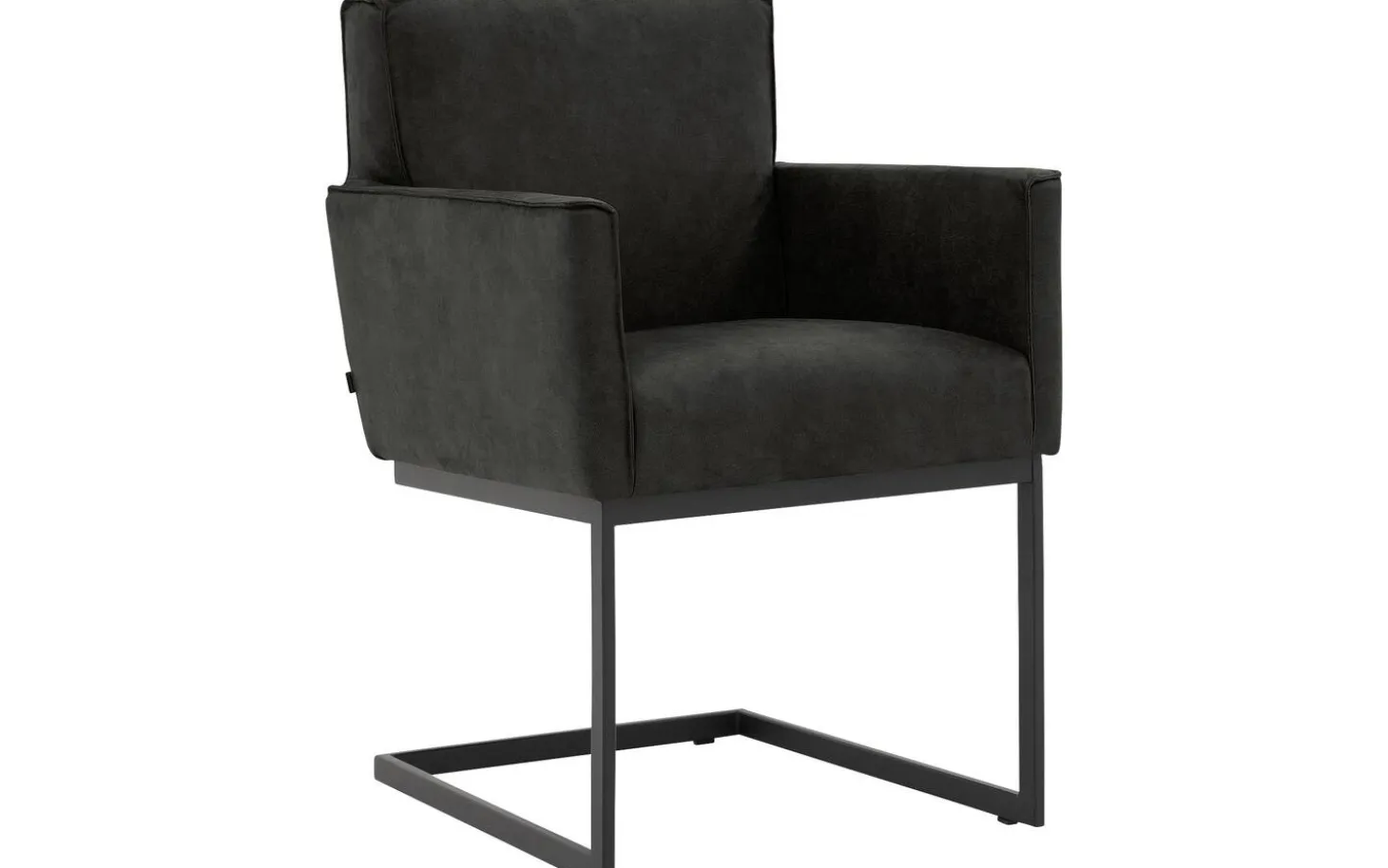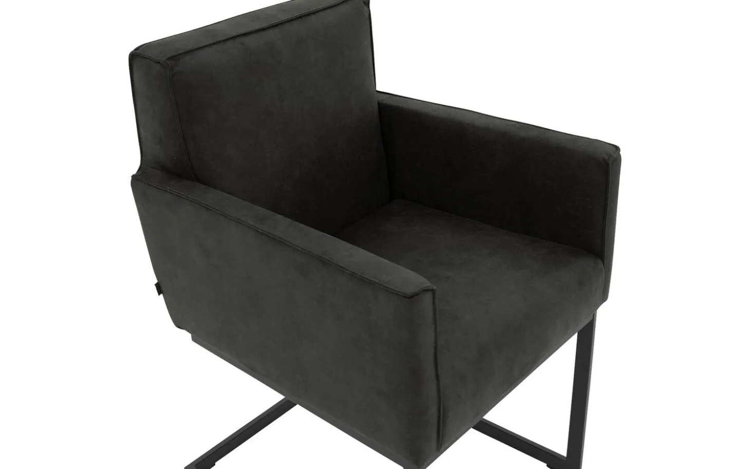 Grauer Esszimmerstuhl Tom mit Armlehne aus Microleder bietet robustem Komfort während langer Essen. Dieser industrielle Esszimmerstuhl lässt Sie gesellige Tischmomente optimal genießen. Dank des anthrazitfarbenen Freischwinggestells federt der Stuhl leicht mit Ihren Bewegungen mit und sorgt für zusätzlichen Sitzkomfort. Das graue Microleder verleiht dem Stuhl eine luxuriöse Ausstrahlung und ist mit einer eleganten Kappnaht versehen, perfekt für ein Interieur mit einer robusten Note.