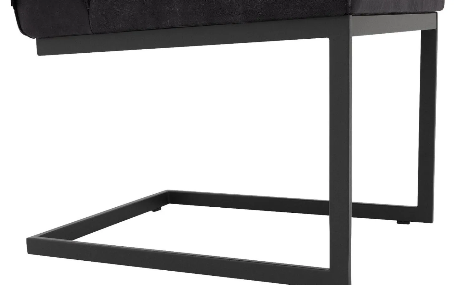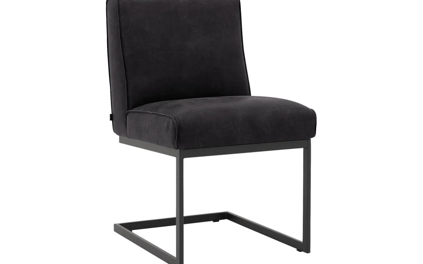 Das Buffalo-Leder verleiht dem Stuhl Tom eine wildlederähnliche Ausstrahlung, die sich warm anfühlt, aber gleichzeitig robust aussieht. Die Kappnaht sorgt für eine handwerkliche Note. Das luftige Stahlgestell in Anthrazit bildet einen schönen Kontrast zum tiefschwarzen Leder und lässt den Stuhl visuell leicht erscheinen.