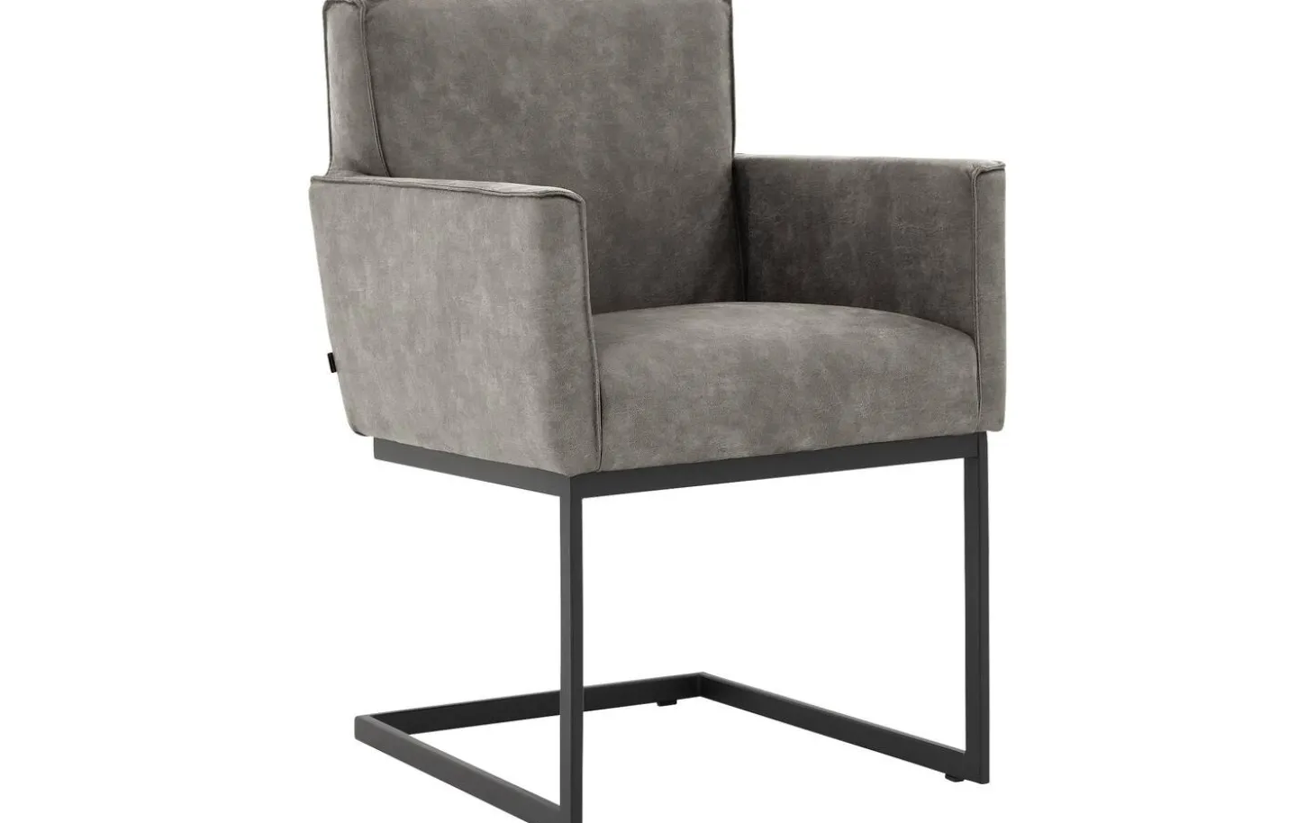 Grauer Esszimmerstuhl Tom mit Armlehne kombiniert rustikalen Komfort mit industriellem Stil. Dieser Esszimmerstuhl aus Microleder passt perfekt in ein urbanes Interieur. Die praktischen Armlehnen bieten zusätzliche Unterstützung während langer Mahlzeiten. Dank des anthrazitfarbenen Freischwinggestells schwingt dieser Stuhl leicht mit Ihren Bewegungen mit – besonders angenehm beim Verweilen nach dem Essen mit Freunden und Familie.