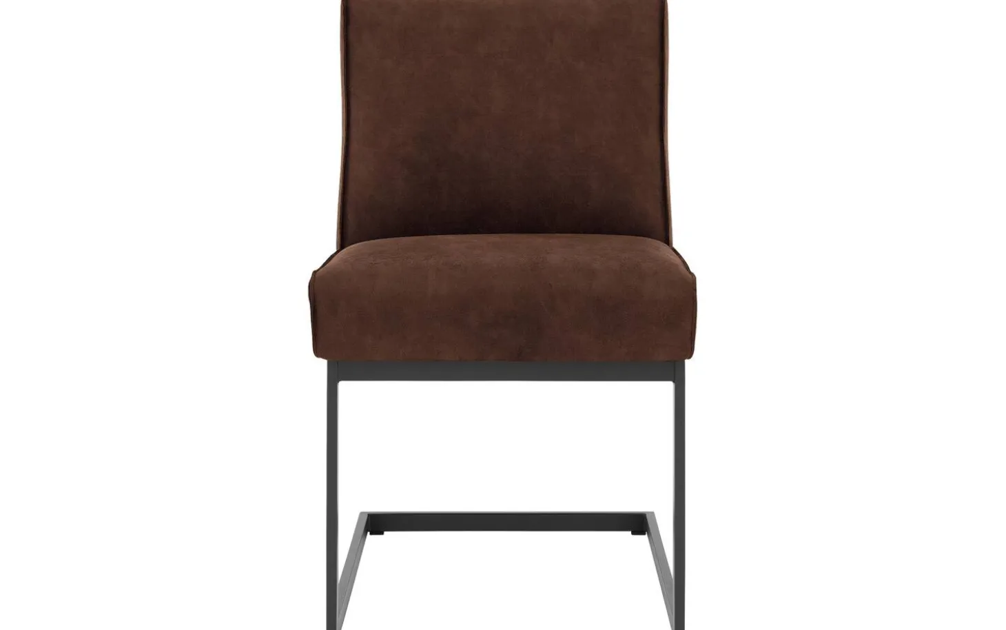 Brauner Esszimmerstuhl Tom ohne Armlehne schafft eine robuste Atmosphäre an Ihrem Esstisch. Dieser Stuhl aus tabakfarbenem Microleder passt perfekt in ein industrielles Interieur. Was Tom wirklich besonders macht, ist das anthrazitfarbene metallene Freischwinggestell, das leicht mit Ihren Bewegungen mitschwingt – herrlich für lange Abende am Tisch. Das Microleder fühlt sich weich an und ist mit einer eleganten Kappnaht versehen, die dem Stuhl eine exklusive Ausstrahlung verleiht.