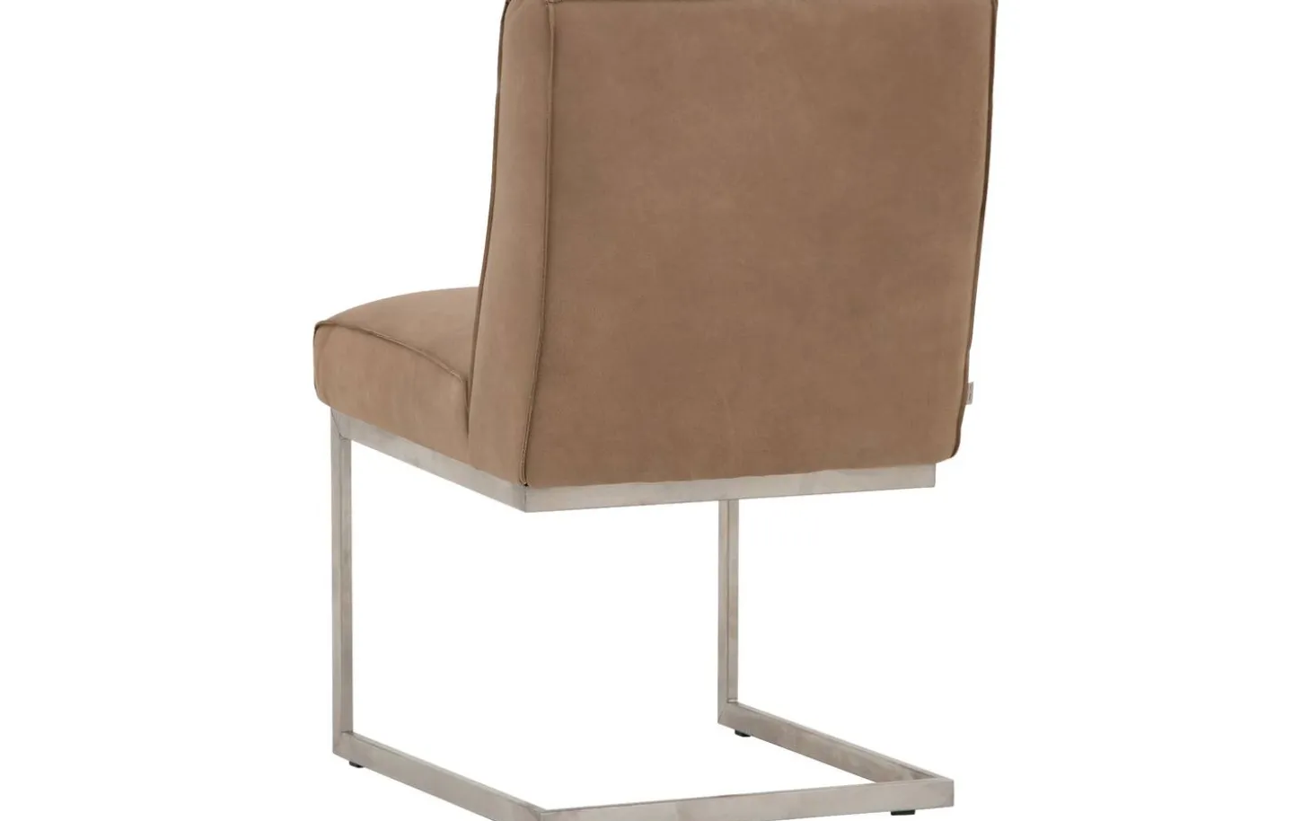 Brauner Esszimmerstuhl Tom aus Leder ohne Armlehne bringt industrielle Robustheit an Ihren Esstisch. Dieser Stuhl aus Buffalo-Leder fühlt sich wunderbar weich an und erhält durch die elegante Kappnaht seinen Charakter. Das Besondere an diesem Esszimmerstuhl ist das Freischwinggestell aus Edelstahl, das leicht mit Ihren Bewegungen mitschwingt. Dadurch sitzen Sie besonders komfortabel, selbst während langer Essen oder gemütlicher Drinks mit Freunden und Familie.